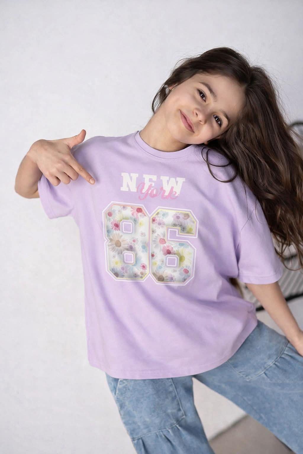 Koszulka New York oversize dziewczęca fiolet Kiz 2657-20326-20