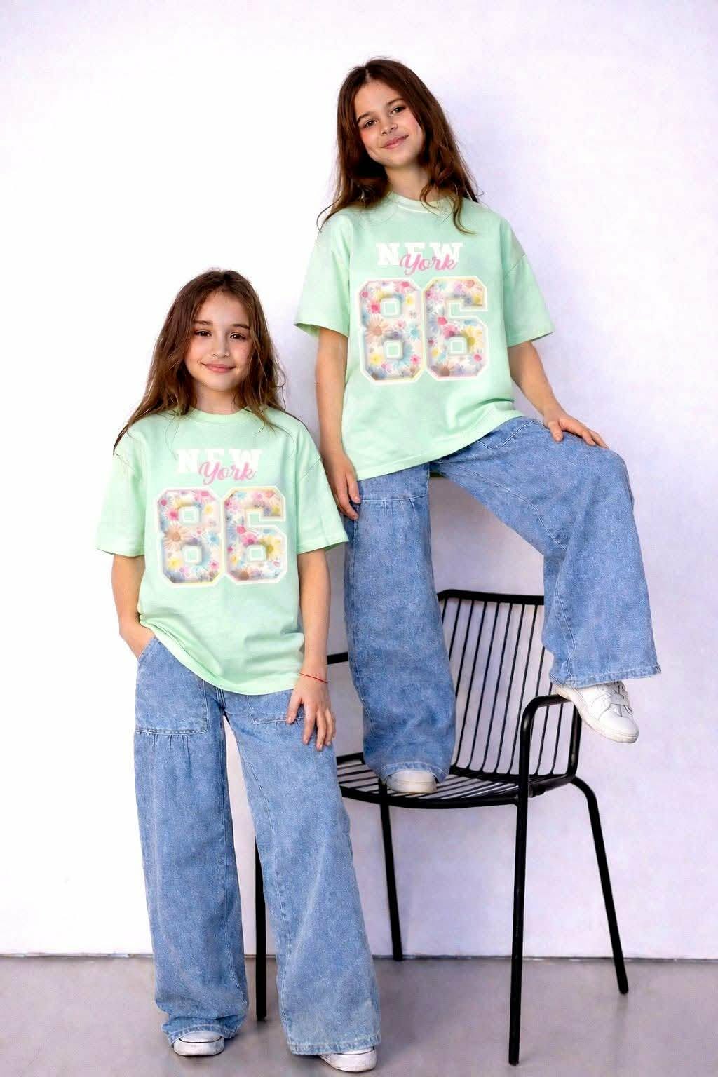 Koszulka New York oversize dziewczęca mięta Kiz 2657-20326