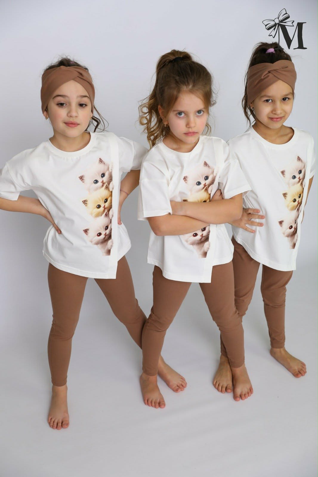 Beige girl's blouse with a cat motif Dresmoda 3421-30525-1