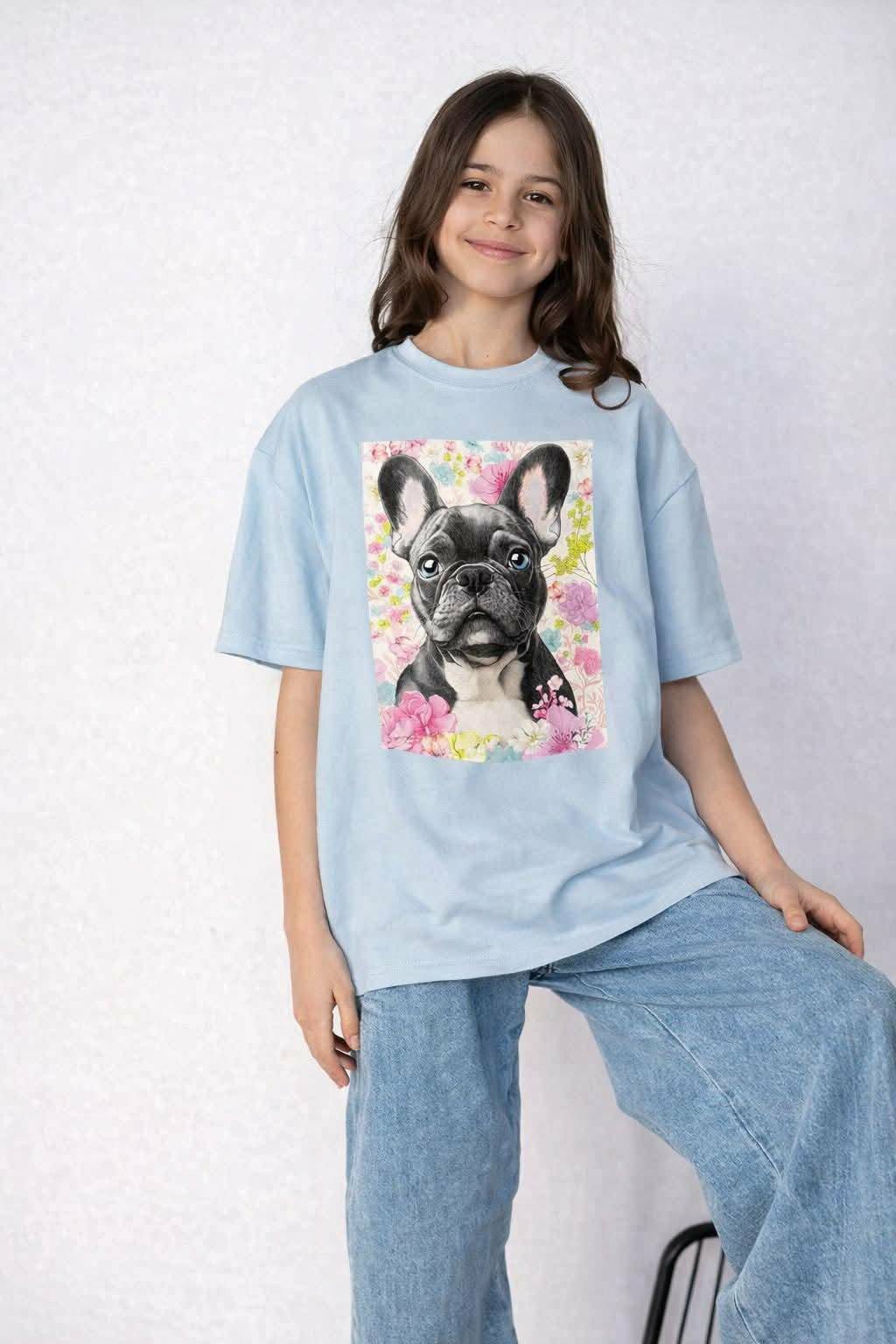 Koszulka buldog oversize dziewczęca niebieski Kiz 4175-20326-35