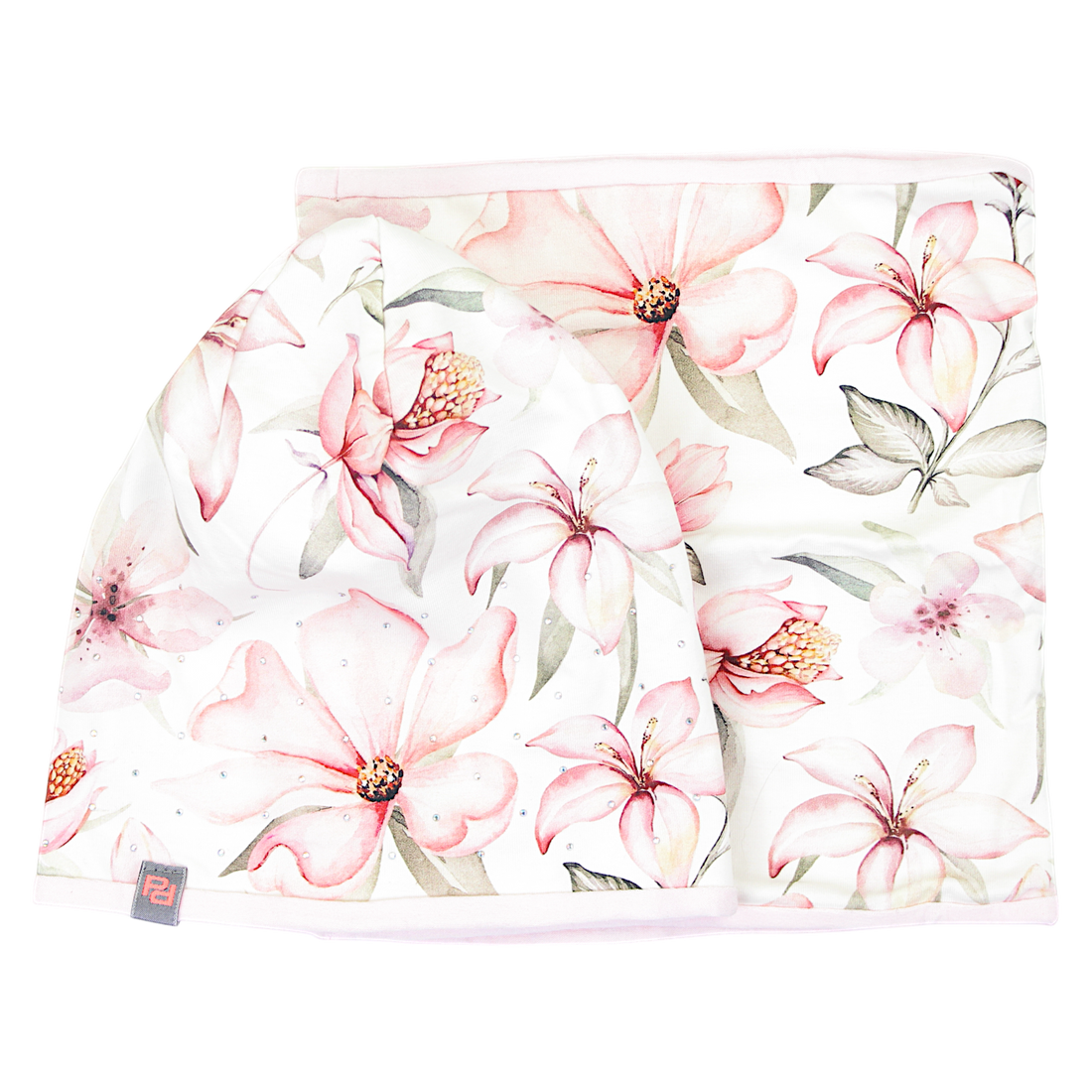 Set of hat and scarf in girlish flowers, pink Panek 2028-11-7325-40