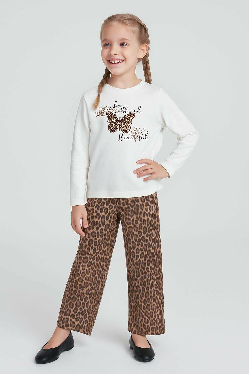 Komplet szwedy w panterkę dziewczęcy krem Breeze 22274-21225
