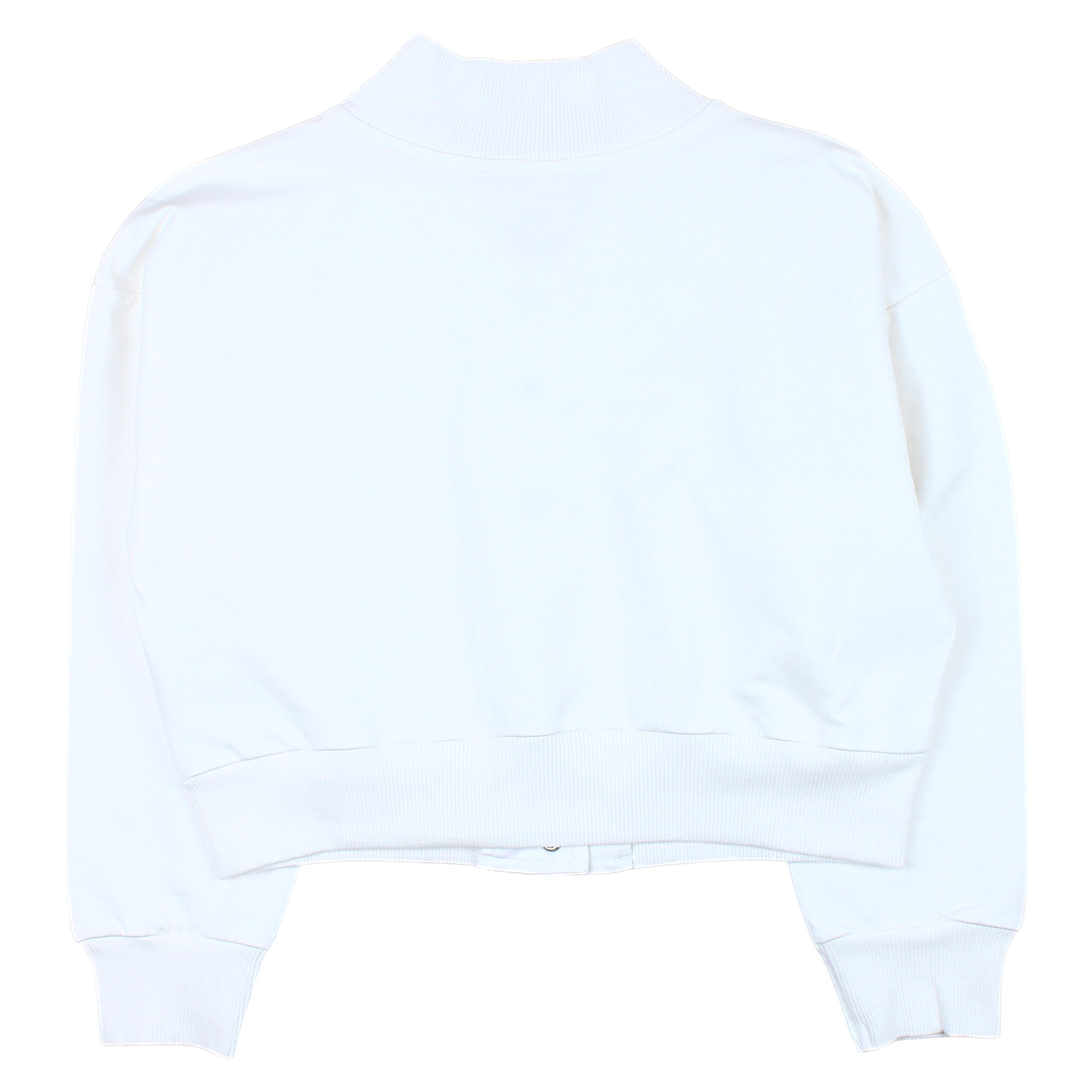 The lower part of the sweatshirt and the sleeve cuffs are finished in a ribbed way, which ensures comfort and makes it fit the body without restricting movement. The sleeves are long, which makes the sweatshirt perfect for colder days. The back of the sweatshirt is plain, maintaining a minimalist style.