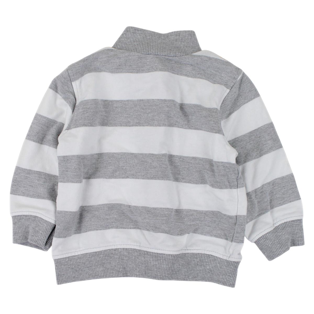 We present a jacket for boys that combines functionality with a fashionable look. The front of the jacket is decorated with gray and white stripes , adding character. The long sleeves are finished with a ribbed cuff for comfort and a snug fit. The zipper allows for easy on and off, and an additional top closure ensures a comfortable fit around the neck. Wide front pockets are practical for storing small items. The back of the jacket is smooth, giving the overall look a stylish look. This jacket is an ideal choice for boys of all ages, ensuring comfort. Perfect for cooler days, both for school and for outdoor play.