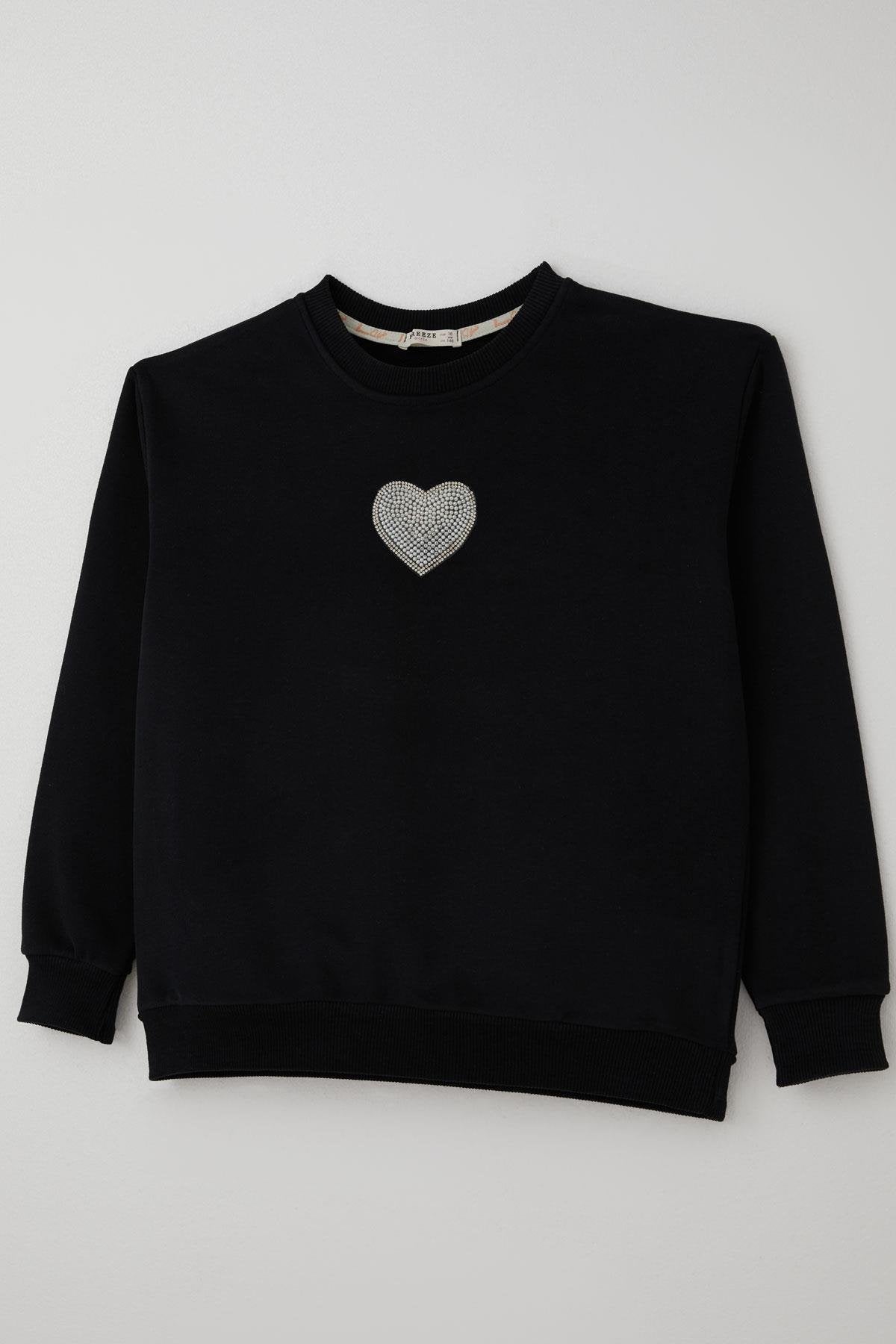 Ta urocza dziewczęca bluza marki Breeze w kolorze czarnym to idealny wybór na sezon jesień-zima. Wykonana z miękkiej bawełny, zapewnia komfort i ciepło. Na przodzie znajduje się ozdobne serce z perełkami, które dodaje elegancji. Bluza posiada długie rękawy i klasyczny okrągły dekolt. Jest doskonała do codziennego noszenia, a także na specjalne okazje.