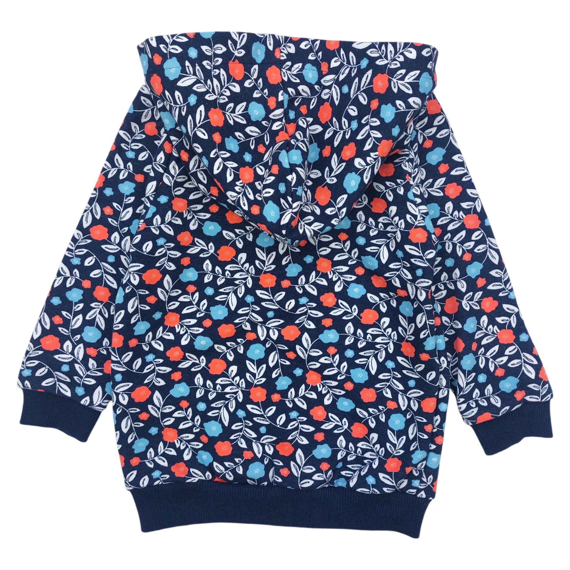 Hoodie MiniWord is a perfect option for girls on colder days. The floral pattern on a navy blue background makes this girl's sweatshirt is both fashionable and comfortable. The zipper makes it easy to put on, and hood protects against wind and rain, making it an ideal choice for autumn walks. The sleeves and bottom of the sweatshirt are finished with cuffs, which ensures a better fit to the body and comfort of wearing.