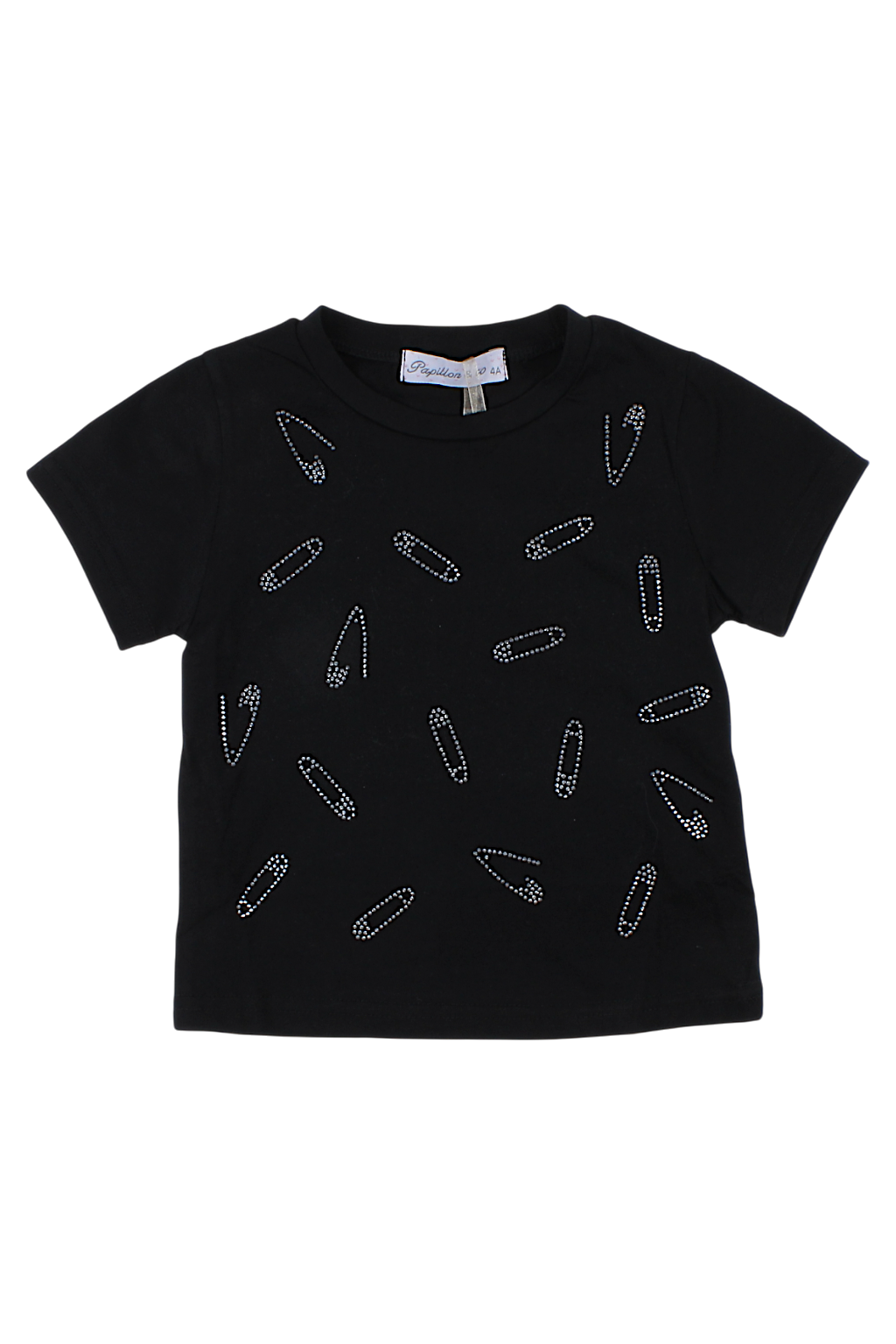 This charming black blouse for girls by Papillon is the perfect combination of style and comfort for warm days. Made of soft fabric, it's not only comfortable but also elegant. A distinctive detail, a decorative safety pin , adds a touch of originality. The blouse has long sleeves and a slightly looser cut, allowing for freedom of movement. The bottom of the blouse is simple, without additional embellishments, making it versatile and suitable for many children's styles. Perfect for any occasion, from casual walks to family gatherings.