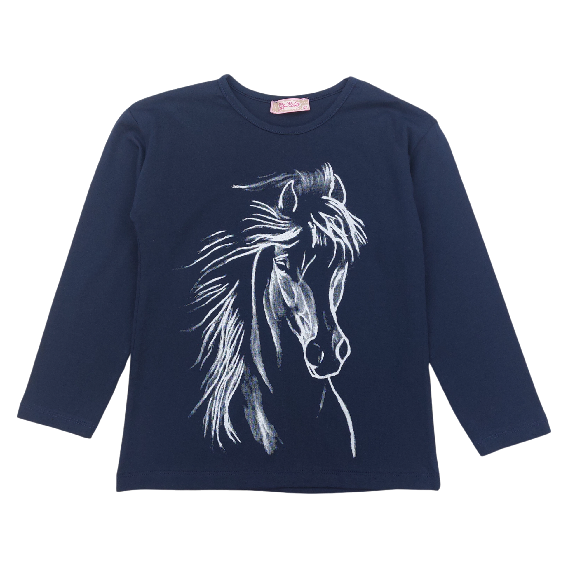 Cotton blouse horse girl navy blue Your Word 434-161024