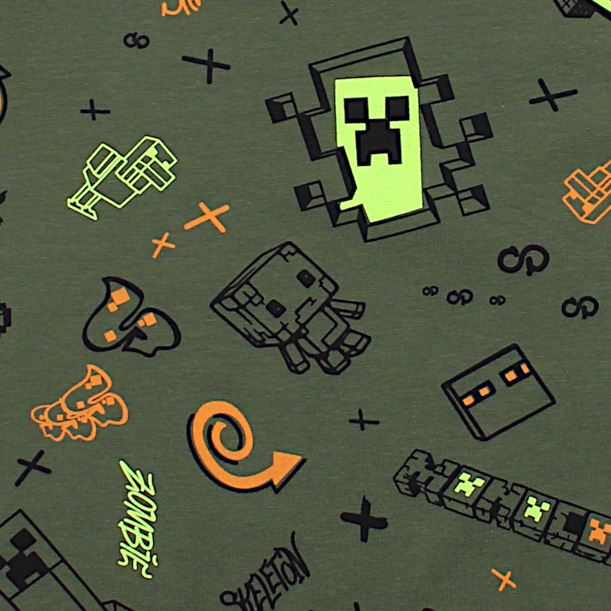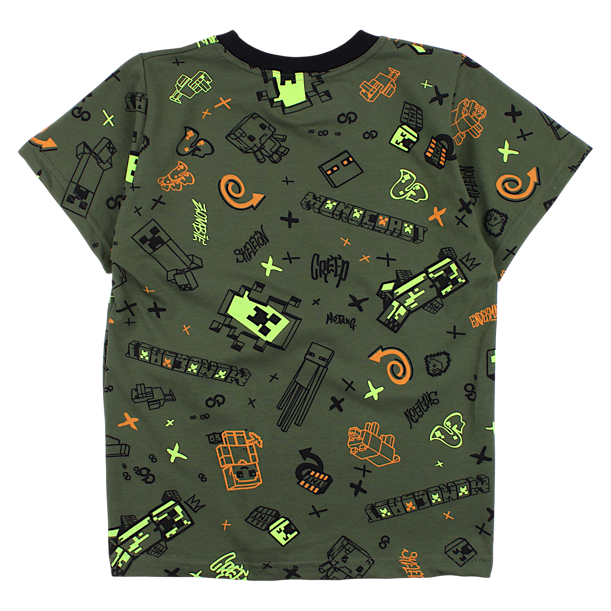 Boys' blouse in olive color is characterized by short sleeves and an original print with graphics. Made of high quality cotton , it provides comfort of wearing on warmer days. At the neckline it has an elastic band , which makes it easier to put on and take off. On the surface of the blouse there are various patterns in neon shades. Perfect for everyday use.