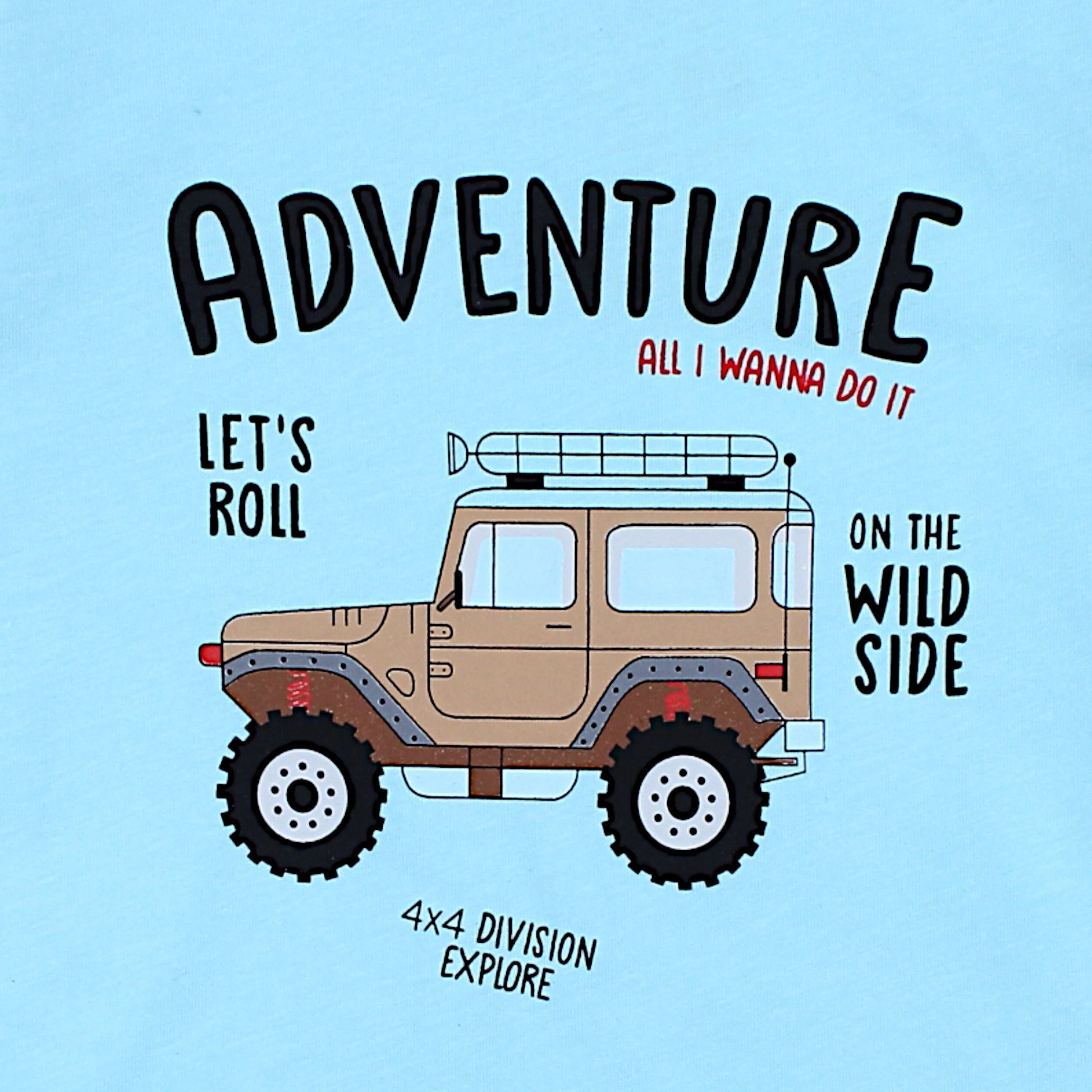 Boys' blouse by Breeze in blue color is a perfect choice for the spring-summer season. Made of soft and breathable fabric, it provides comfort of wearing all day long. The blouse has short sleeves, which makes it ideal for warm days. The characteristic print with a jeep motif adds a unique style to it. Elegant finishes at the neck and sleeves emphasize the childish character of the blouse. The lack of fasteners allows for quick and easy putting on.