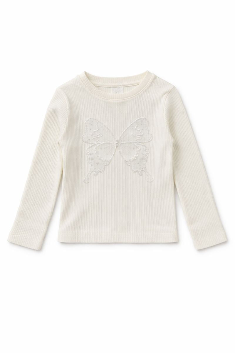 Kremowa bluzka dziewczęca z motylkiem, prążkowana