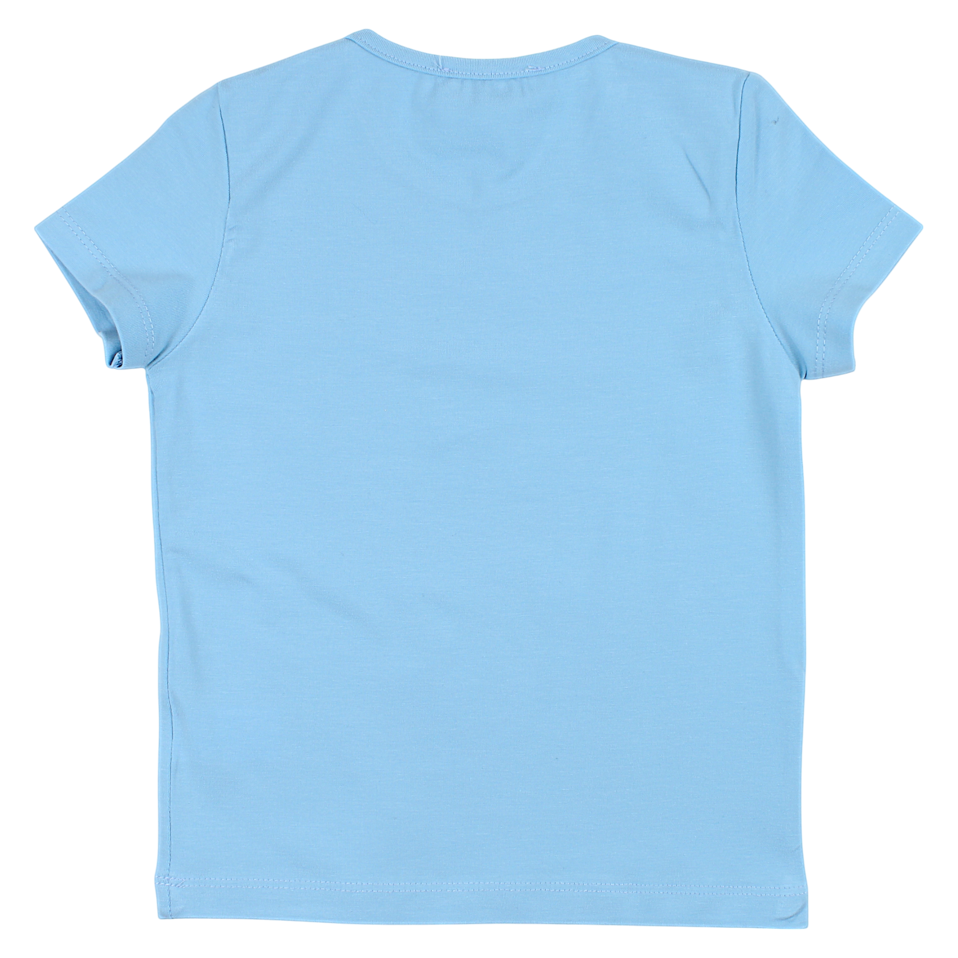 Elegant and fun at the same time, this girls' blouse with a motif of two giraffes is a great choice for the spring-summer season. Decorated in a unique blue color , this blouse is perfect for everyday wear, while offering elements of funny charm thanks to the animal print. Made of soft material, which is a combination of cotton and elastane, it guarantees comfort and freedom of movement, essential for active children. Short sleeves and no fastenings make it easy to put on, which is especially practical for small children and their mothers. The front of the blouse is decorated with a charming graphic that will surely appeal to little animal lovers, while the back remains plain, which allows for easy matching with other clothes in the child's wardrobe. The fabric is pleasant to the touch, which allows for comfortable wearing all day long, whether on the playground, a walk or in kindergarten. Designed for girls, this stylish blouse is not only a functional wardrobe element, but also an expression of the joy of discovering the world thanks to its cheerful motif. This outfit is perfect for a little traveler who loves animals and comfortable yet stylish clothing.