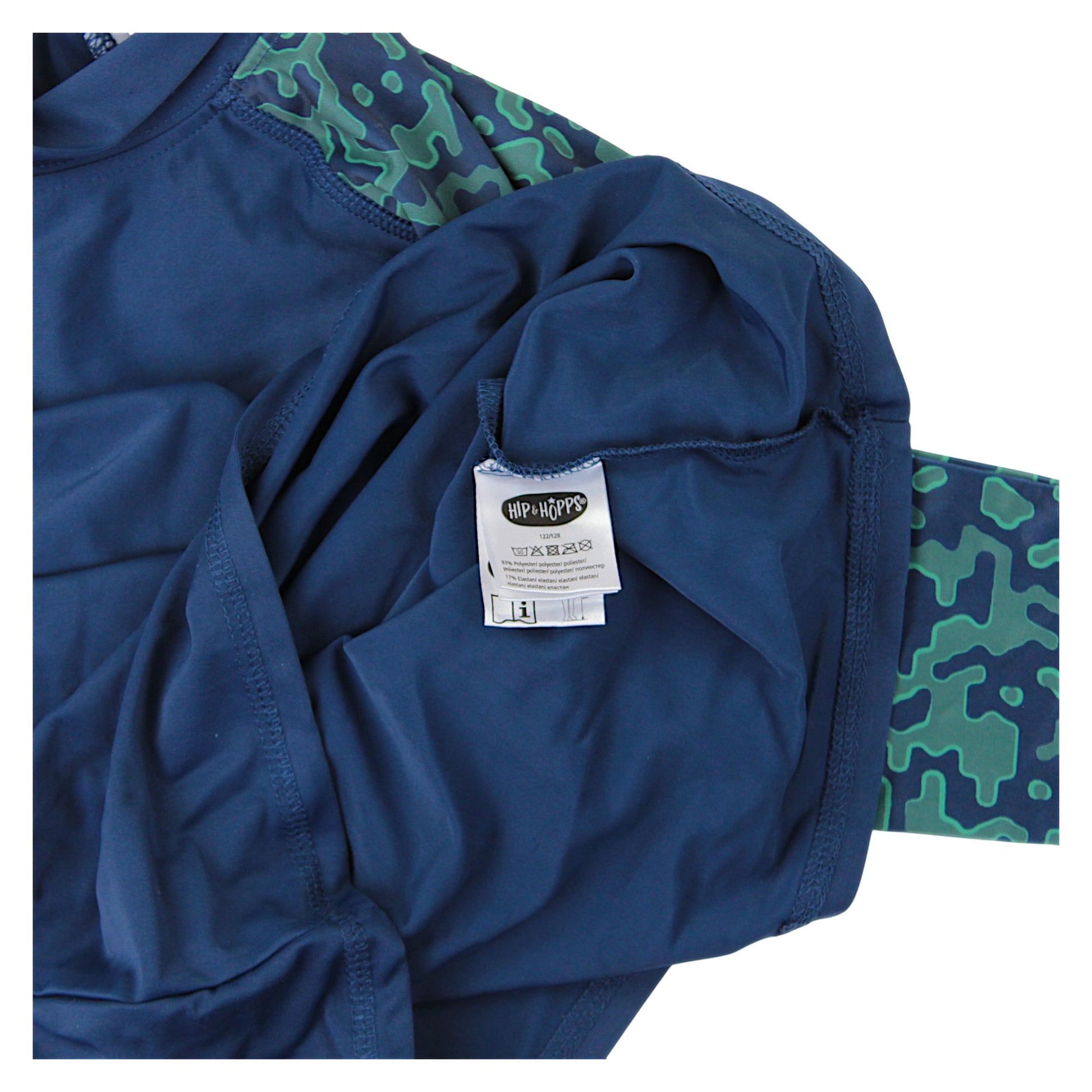 Boys' HIP&HOPPS long-sleeved blouse in navy blue. Made of high-quality material, ideal for the spring-summer season. It has a sporty design with an interesting camouflage pattern on the sleeves. The blouse has long sleeves and a high collar , which provides additional protection against the wind. It is perfect for outdoor activities.