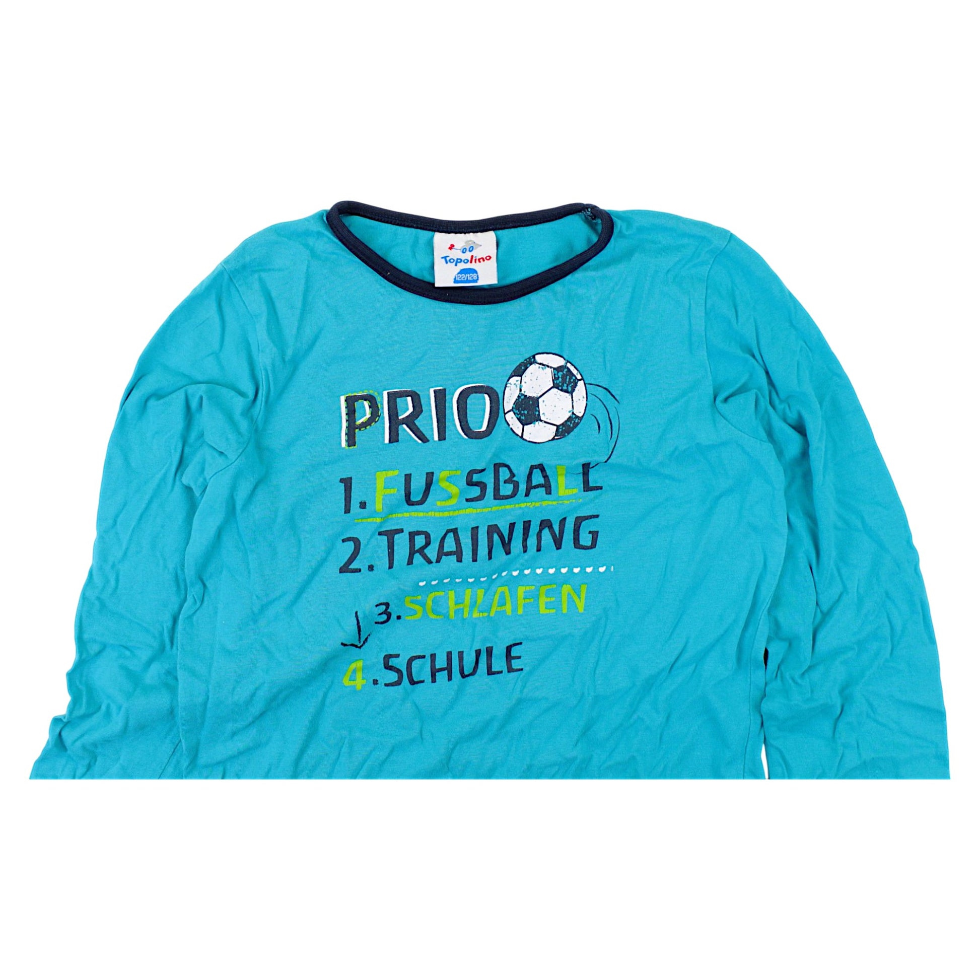 A charming long-sleeved T-shirt for a boy with a football motif from the Topolino brand. Made in blue , it is perfect for everyday wear and sports training. On the front there is a print with an inscription in German and a ball graphic, which gives it a unique character. The T-shirt is comfortable to wear thanks to its classic cut and soft cotton. Perfect for a little football lover!