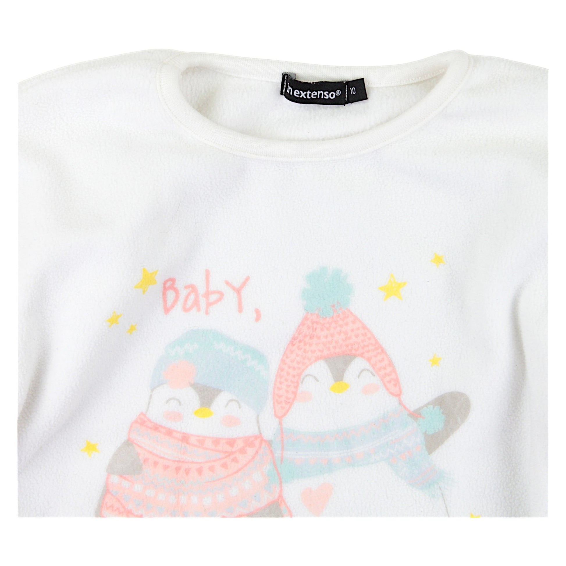 A lovely long-sleeved blouse for girls with a penguin motif from the In Extenso brand. Made in white , perfect for the spring-summer season . The blouse has a round neckline and long sleeves , which ensure comfort when worn. A lovely graphic with penguins and the inscription "Baby, it's cold outside" add childish charm. Perfect for cooler days of spring and summer.