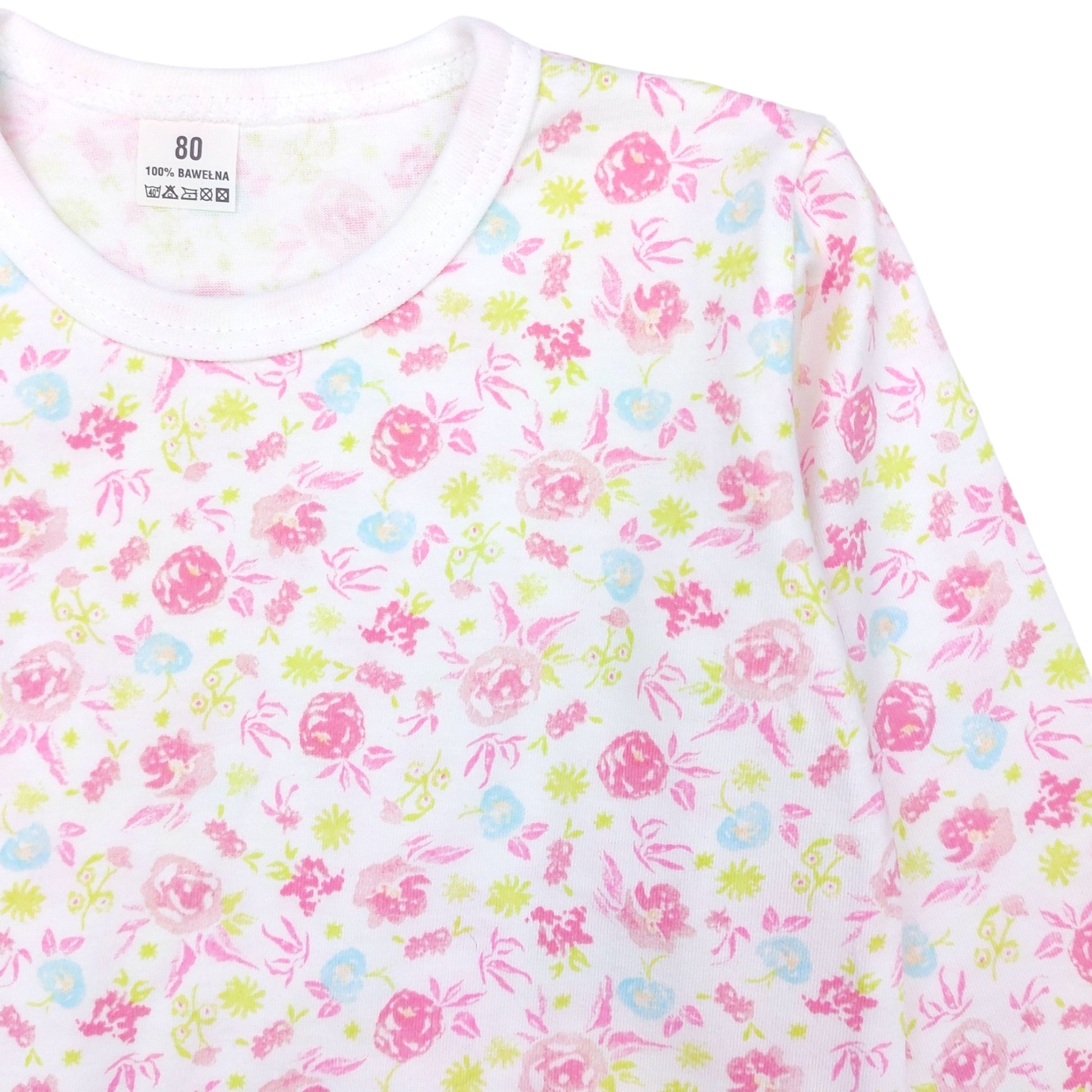 Practical snaps in the crotch make it easy to quickly change, which is especially convenient for everyday use. Thanks to the long sleeves, the bodysuit is great for colder days, providing your little one with warmth. Floral baby bodysuit stands out not only for its aesthetics, but also for its functionality, making it an ideal choice for active babies.