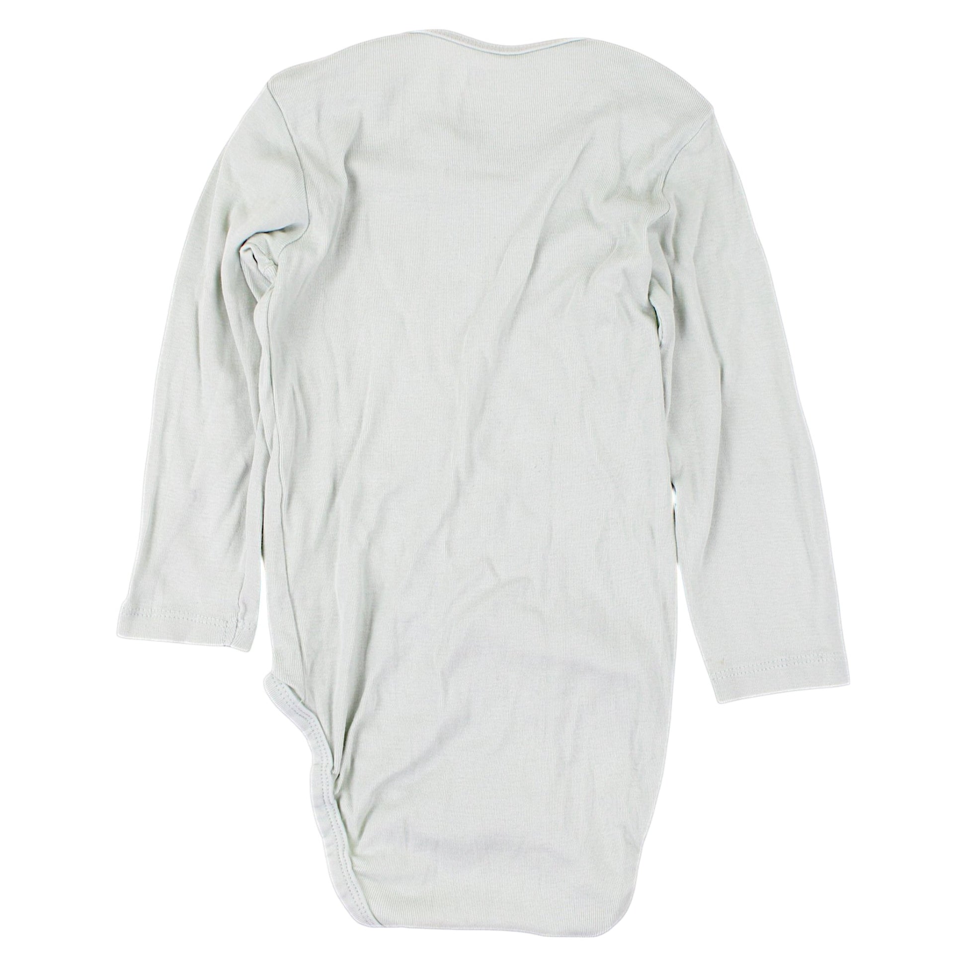 Delicate long-sleeved bodysuit for girls by H&M in a subtle green color . Made of organic cotton , which guarantees maximum comfort and softness for the child's sensitive skin. The bodysuit has a round neckline and snap fastening in the crotch, which makes it easier to change the baby's diaper. The classic cut makes it an ideal base for various everyday styles.