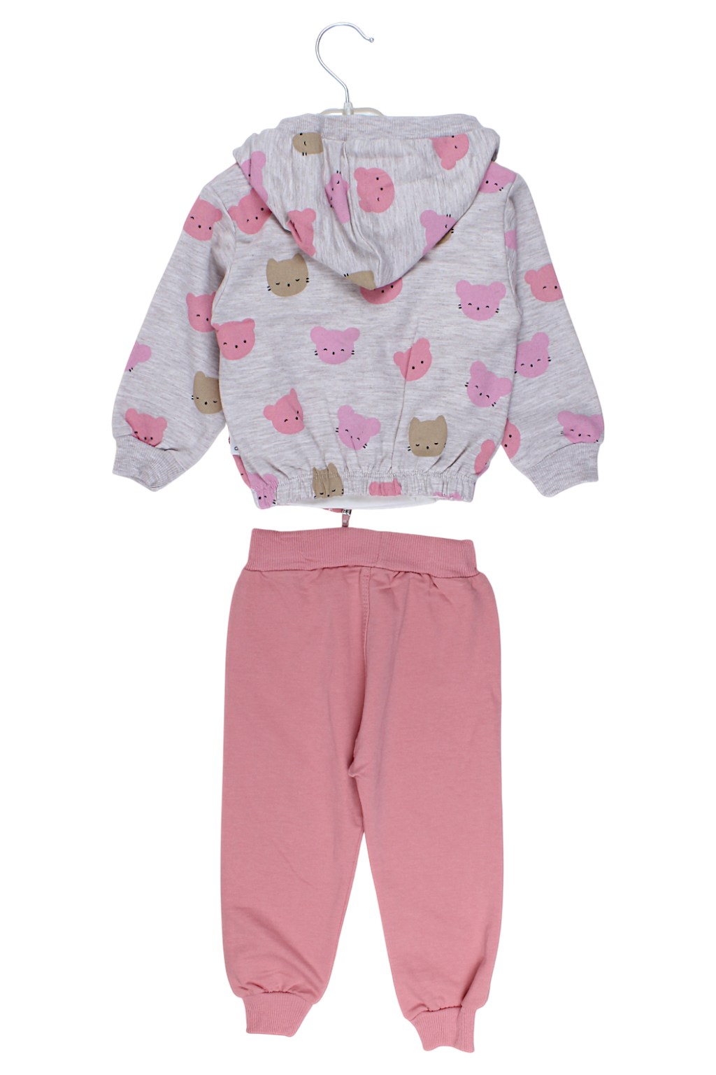 We present this charming 3-piece tracksuit for girls by Mini Club in a subtle beige color. The set includes a comfortable long-sleeved sweatshirt, pants, and a T-shirt. The sweatshirt has practical pockets and a convenient zipper closure for easy dressing. The pants have an elastic waistband for comfort. The entire piece is made of soft material, perfect for the fall and winter season. It's a perfect choice for any little girl who values comfort and style.