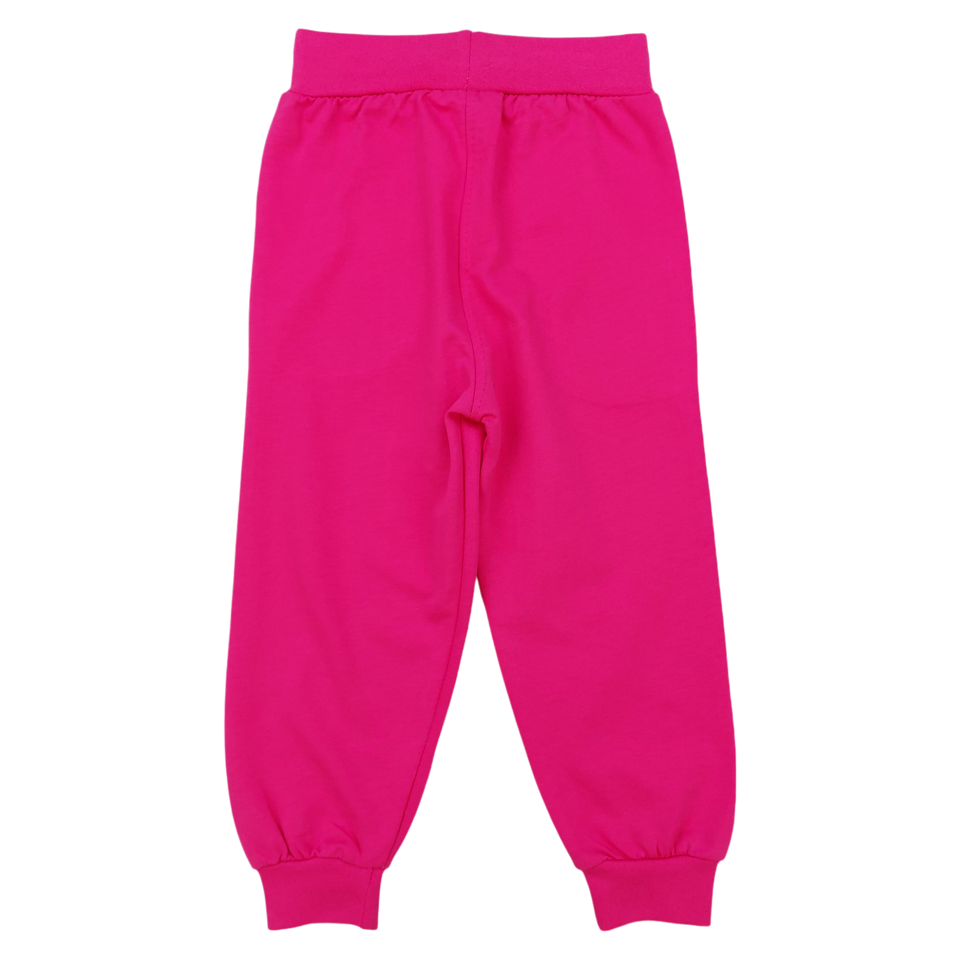 Trousers in a bold, intense fuchsia color are the perfect complement to the set. Their sporty cut and elastic cuffs on the legs and waist guarantee comfort and freedom of movement. Thanks to practical pockets, your little one can always have their favorite trinkets with them - an ideal solution during walks or visits to friends. The intense color of the trousers perfectly matches the floral motif of the sweatshirt, creating a harmonious and fashionable set.