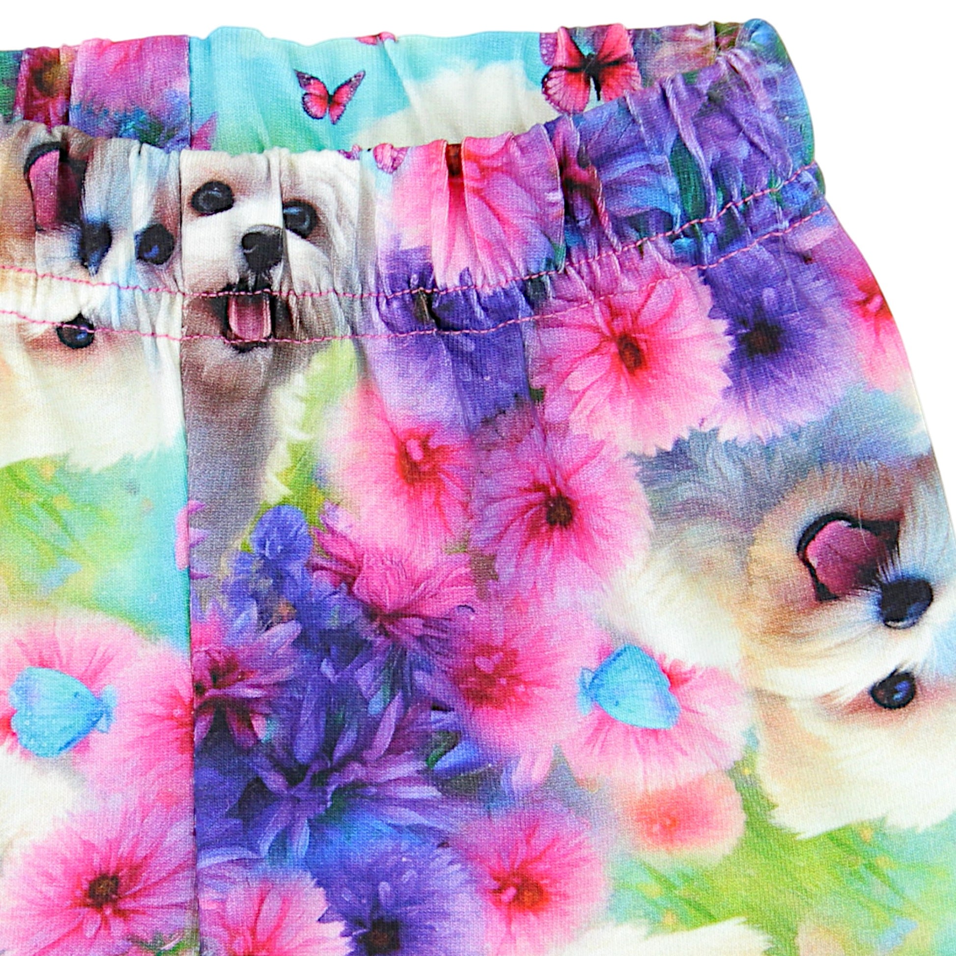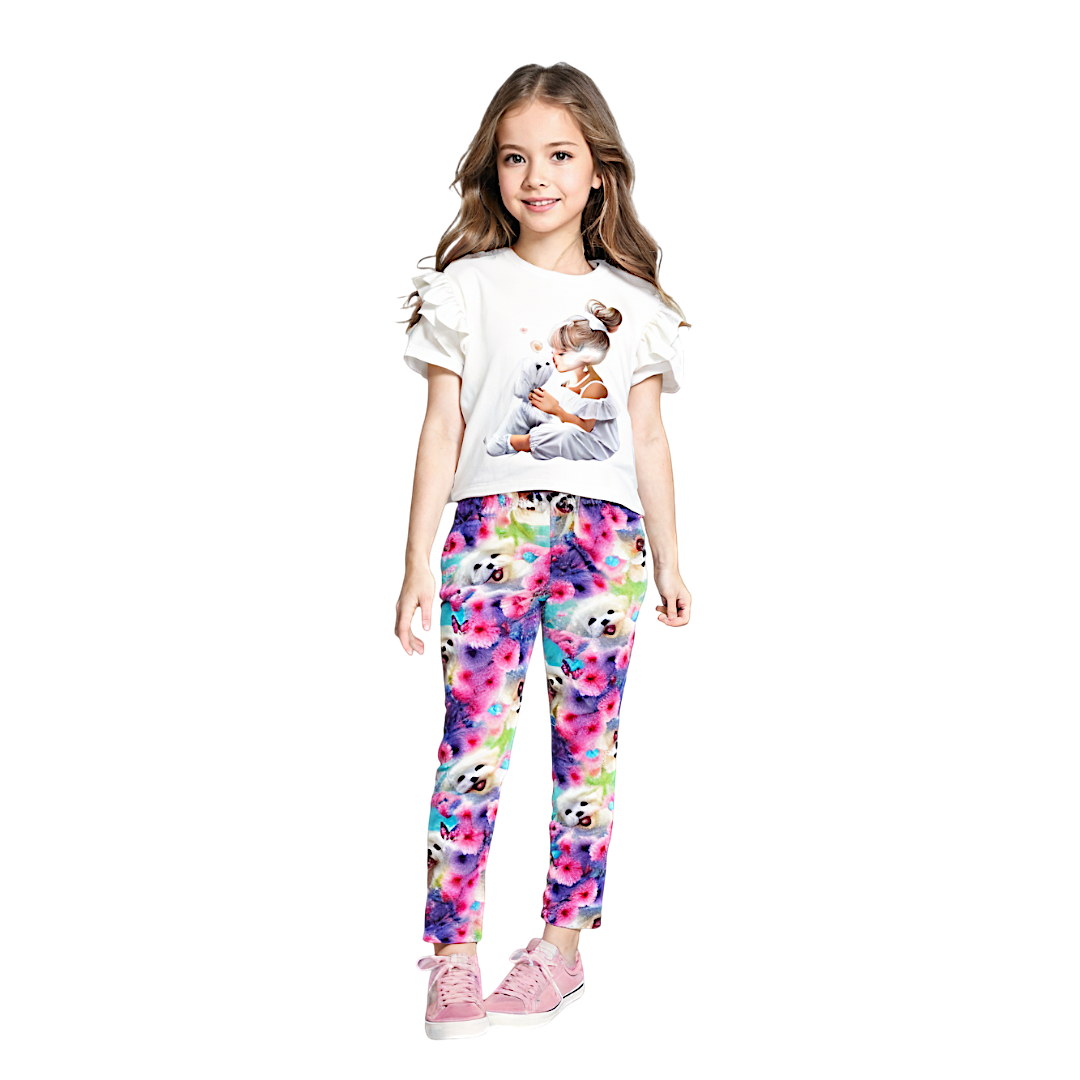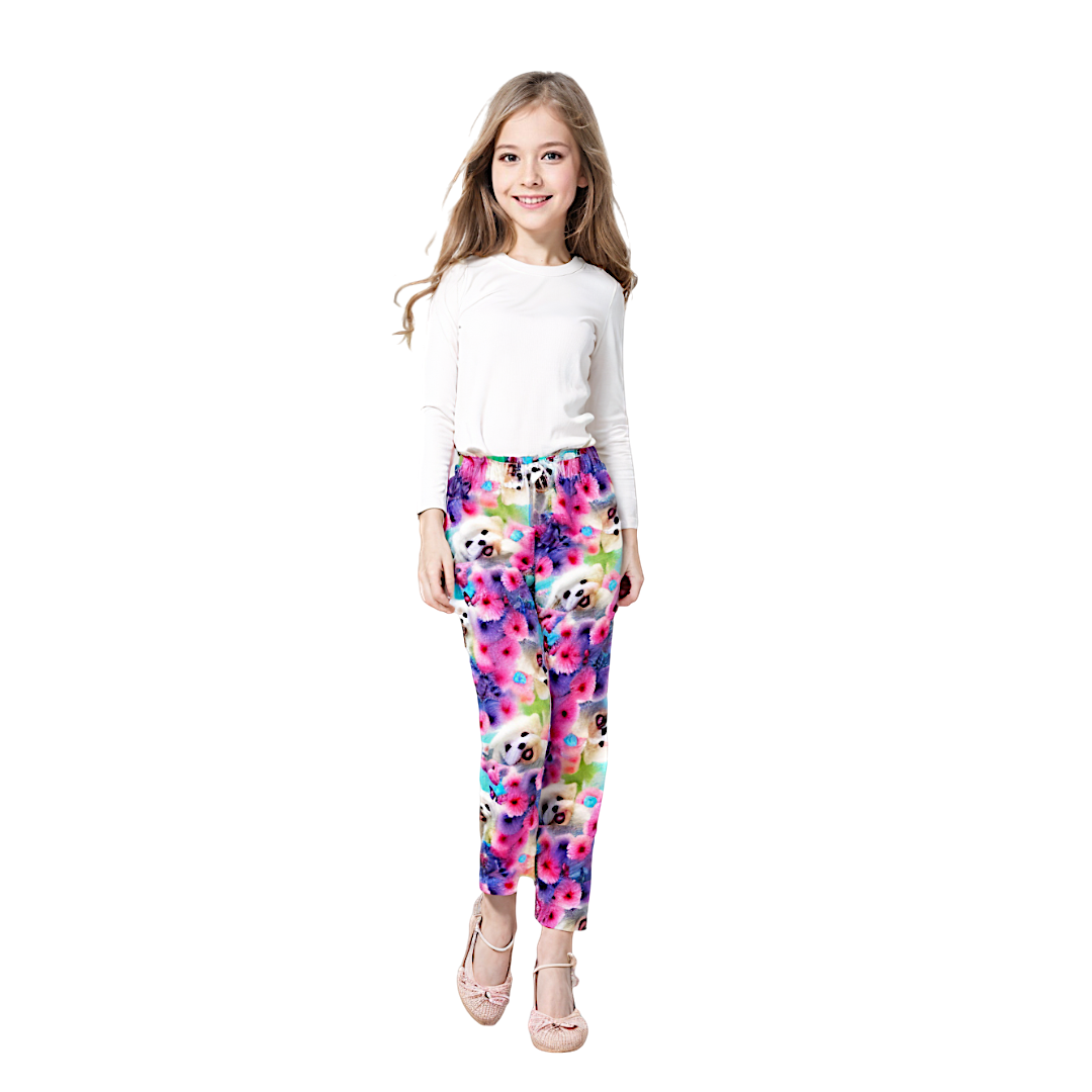 We invite you to the world of children's fashion with our Maltese Dream children's trousers from the BambiKids collection! Perfect for warm days, these children's trousers offer not only comfort but also style that catches the eye. Print with cute Maltese and lush flowers in pastel colors introduce a joyful mood to every child's outfit.