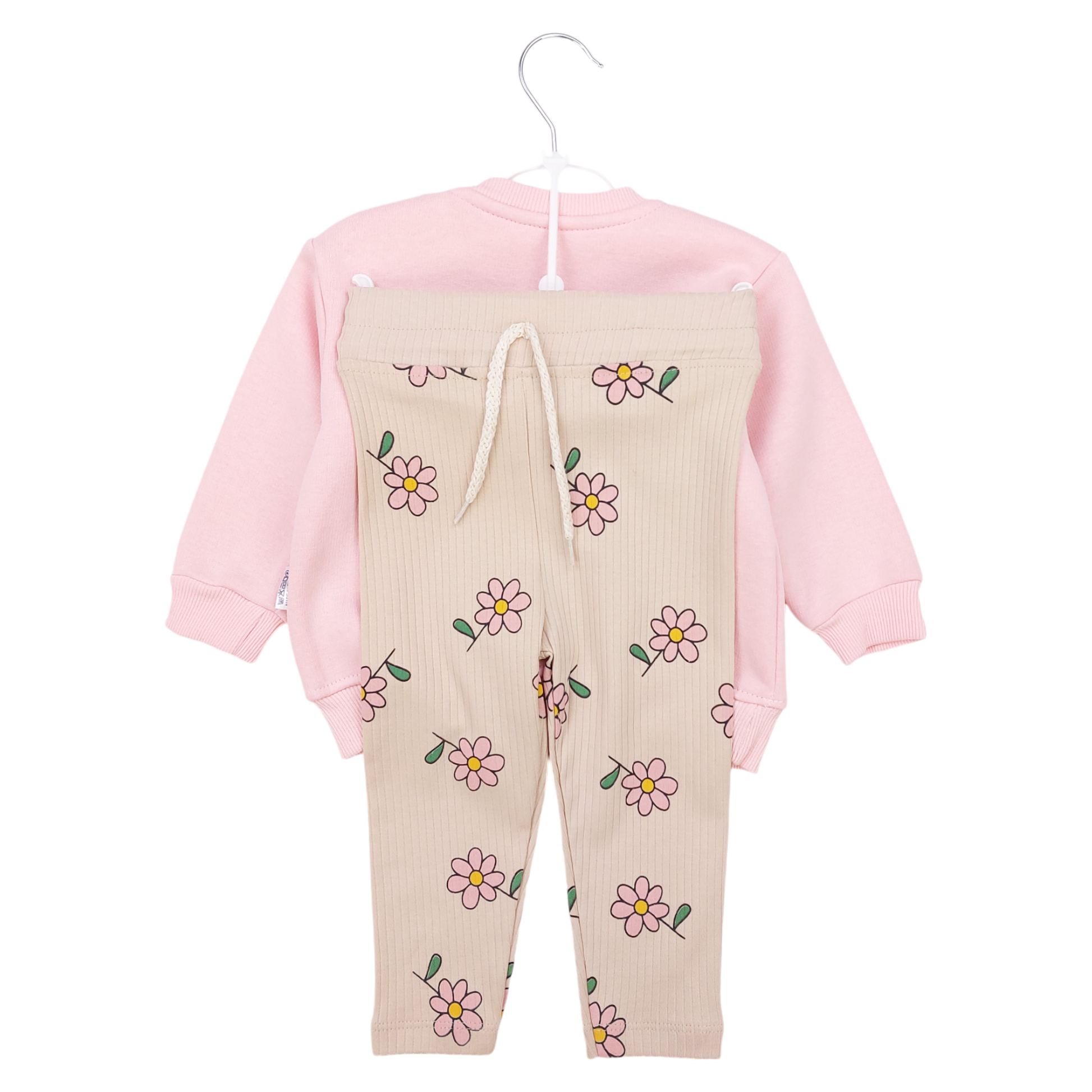 This girl's set Murat Baby is the perfect solution for the season autumn-winter , when little girls need comfort and warmth. Made of high-quality cotton, the set is pleasant to the child's skin and allows for free play and outdoor activities. Long sleeve sweatshirt has soft cuffs that gently adjust to the body, protecting against cold. Pants with a delicate floral pattern add girlish charm and are elastic, which ensures full freedom of movement. Children's set This set will be perfect both at home and on a walk.