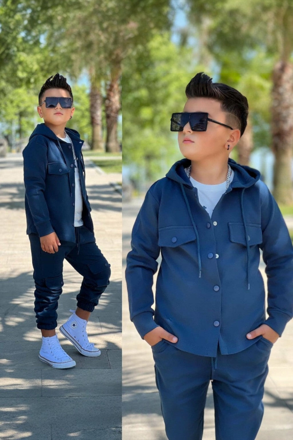 This elegant and sporty navy blue boys' set from Surprise is the perfect blend of style and comfort. The set includes a blouse and sweatpants . The blouse has a classic cut with long sleeves, while the pants have an elastic waist for a better fit. The set is made of soft cotton, ensuring comfort. Perfect for everyday wear and special occasions.