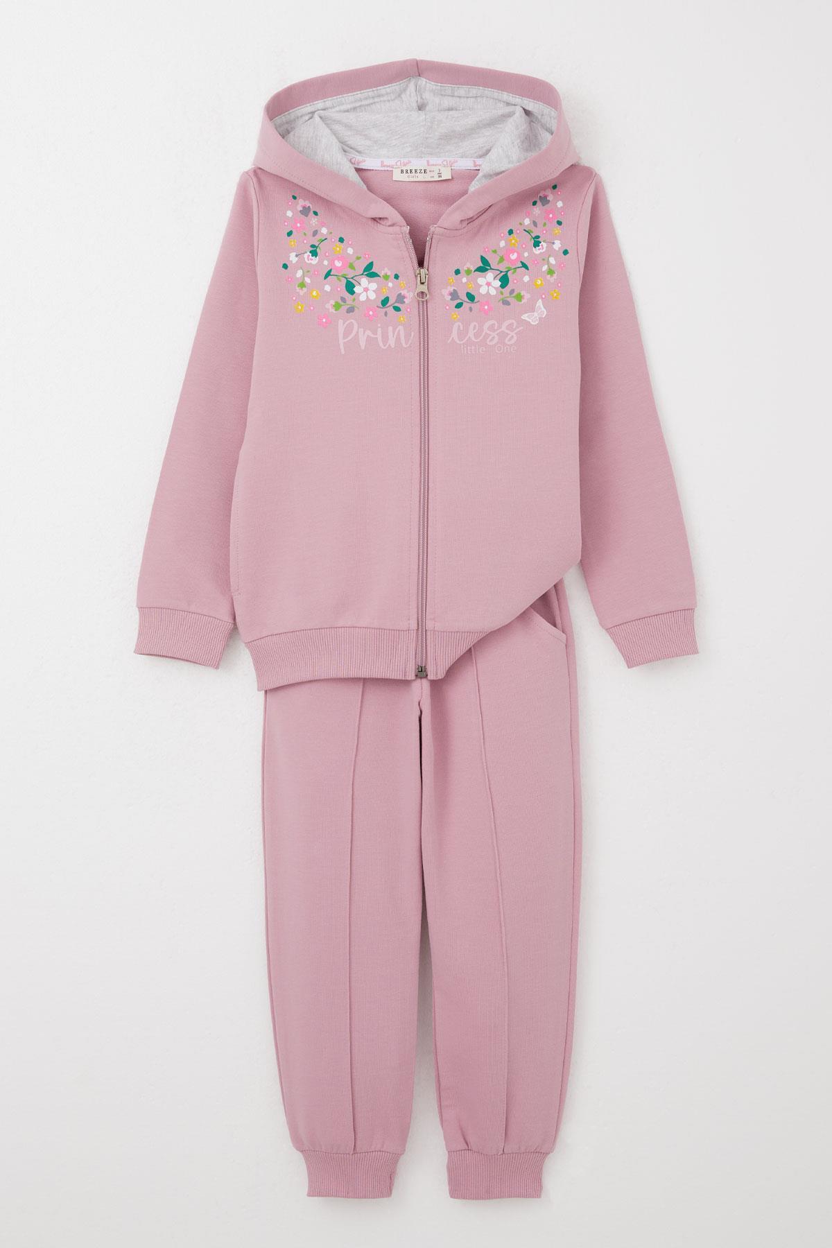 We present a girls' sports set in an elegant dusty pink color from Breeze . This set is perfect for the fall and winter season, providing comfort and style. The set consists of two pieces: a long-sleeved sweatshirt and pants. The sweatshirt has practical pockets and a convenient zipper closure, making it easy to put on and take off. The pants have an elastic waist for comfort. The entire set is made of soft material, making it pleasant to the touch and ideal for baby's delicate skin.