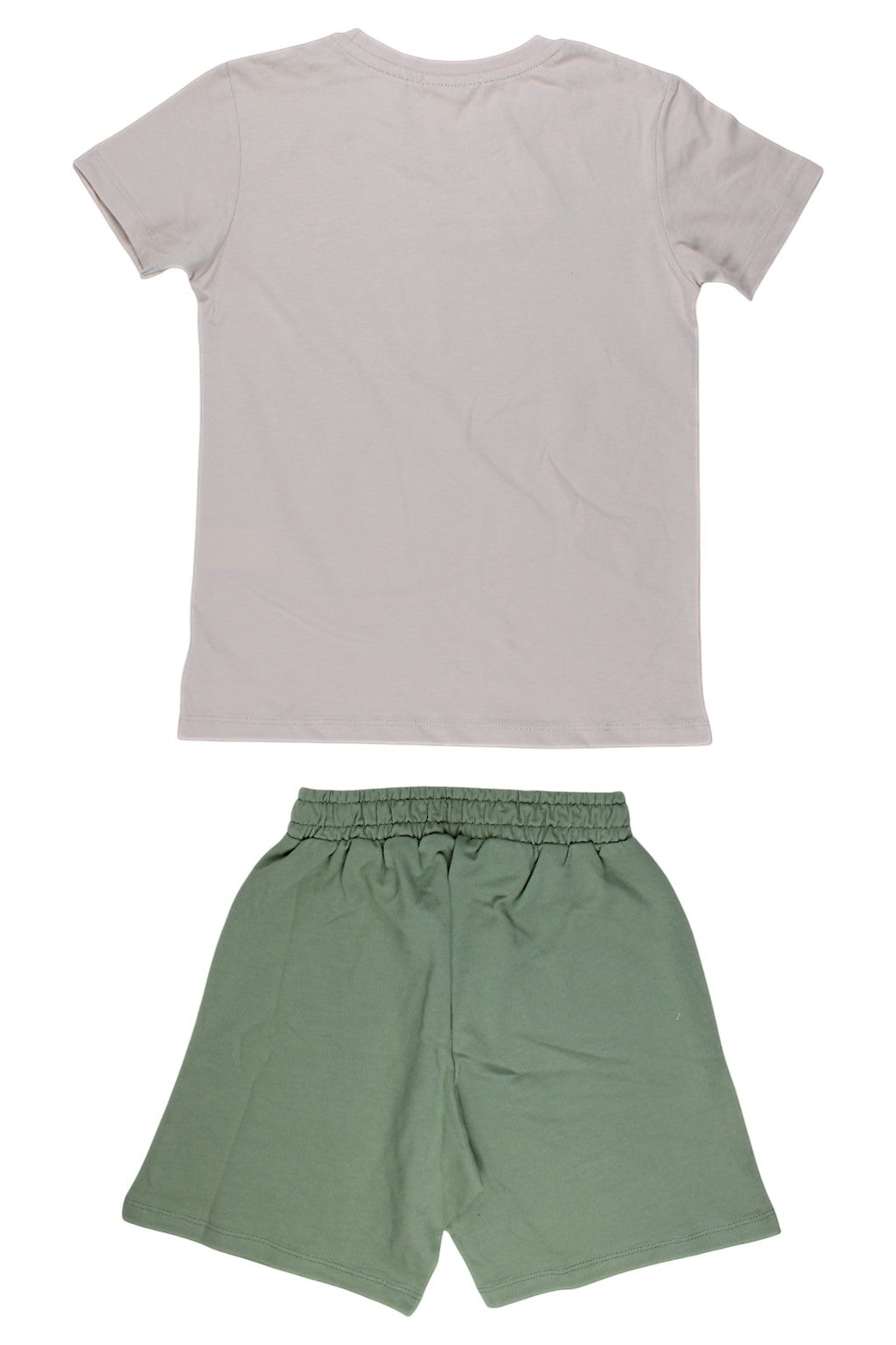 The Strong set from Breeze is the perfect spring/summer choice for boys. The set is crafted in beige , giving it an elegant and versatile look. The set consists of two pieces: a short-sleeved T-shirt and shorts. The T-shirt features a round neckline and an attractive print on the front, adding character to the overall look. The shorts have an elastic waistband for comfort. Thanks to the high-quality cotton material, the set is breathable and comfortable, perfect for warm days. It's perfect for both everyday activities and more formal occasions.Composition: 100% cotton