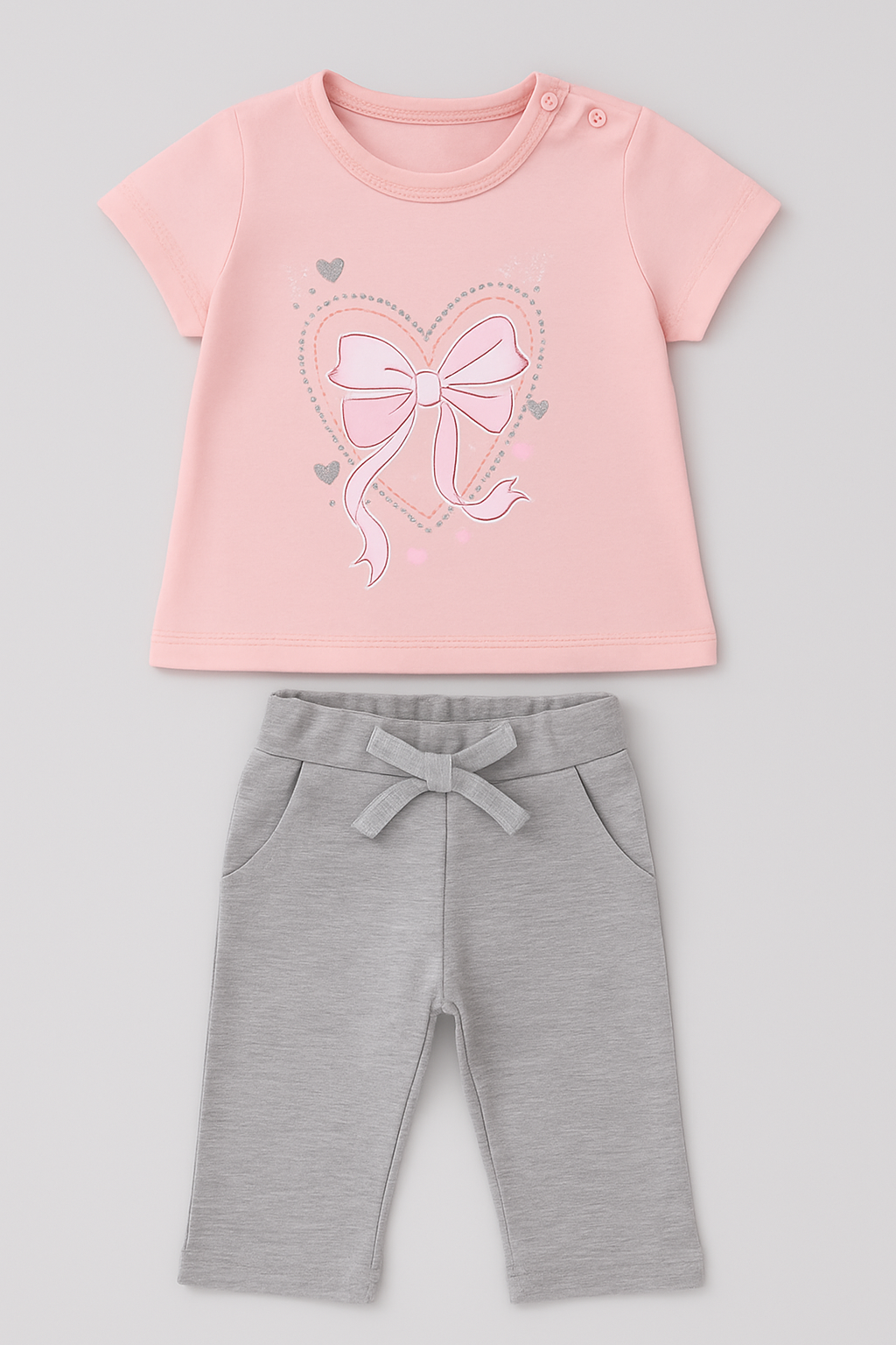 Two-piece girl's set in pink and gray