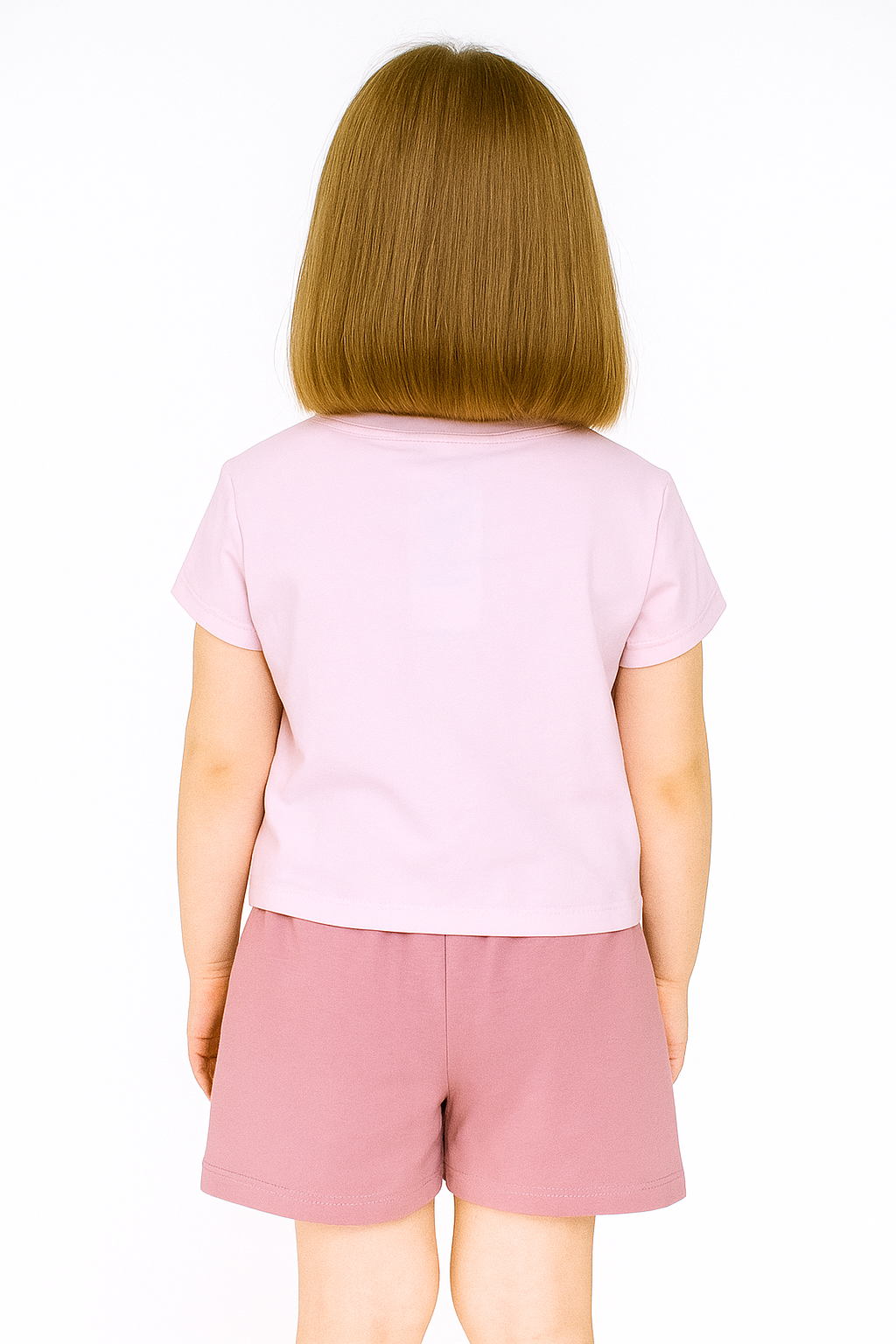 Discover this charming fango -colored set for girls from Breeze . This two-piece set includes a blouse and shorts adorned with a delicate floral pattern . The blouse has short sleeves, perfect for warmer days, and a ribbed neckline for added comfort. The shorts are breathable and stretchy, allowing for freedom of movement. The set has no zippers or buttons, making it easy to put on. This is a perfect choice for spring and summer days for every little girl.
