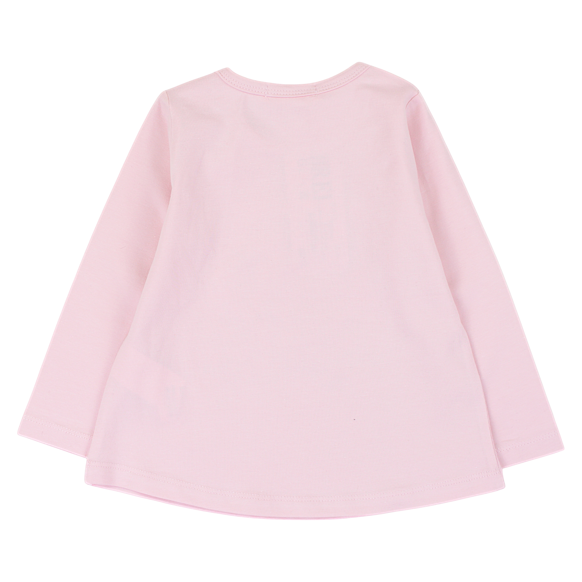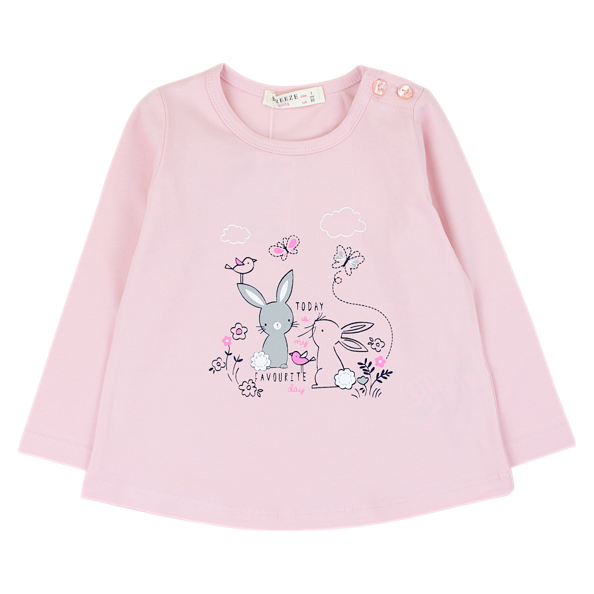 Girl's set Breeze is the perfect choice for little princesses for every day and for special occasions. Pink printed blouse it's amazing a cute pattern with bunnies , clouds and butterflies that give it a fairy-tale character. Long sleeves make the set perfect for colder days , providing the child warmth and comfort .