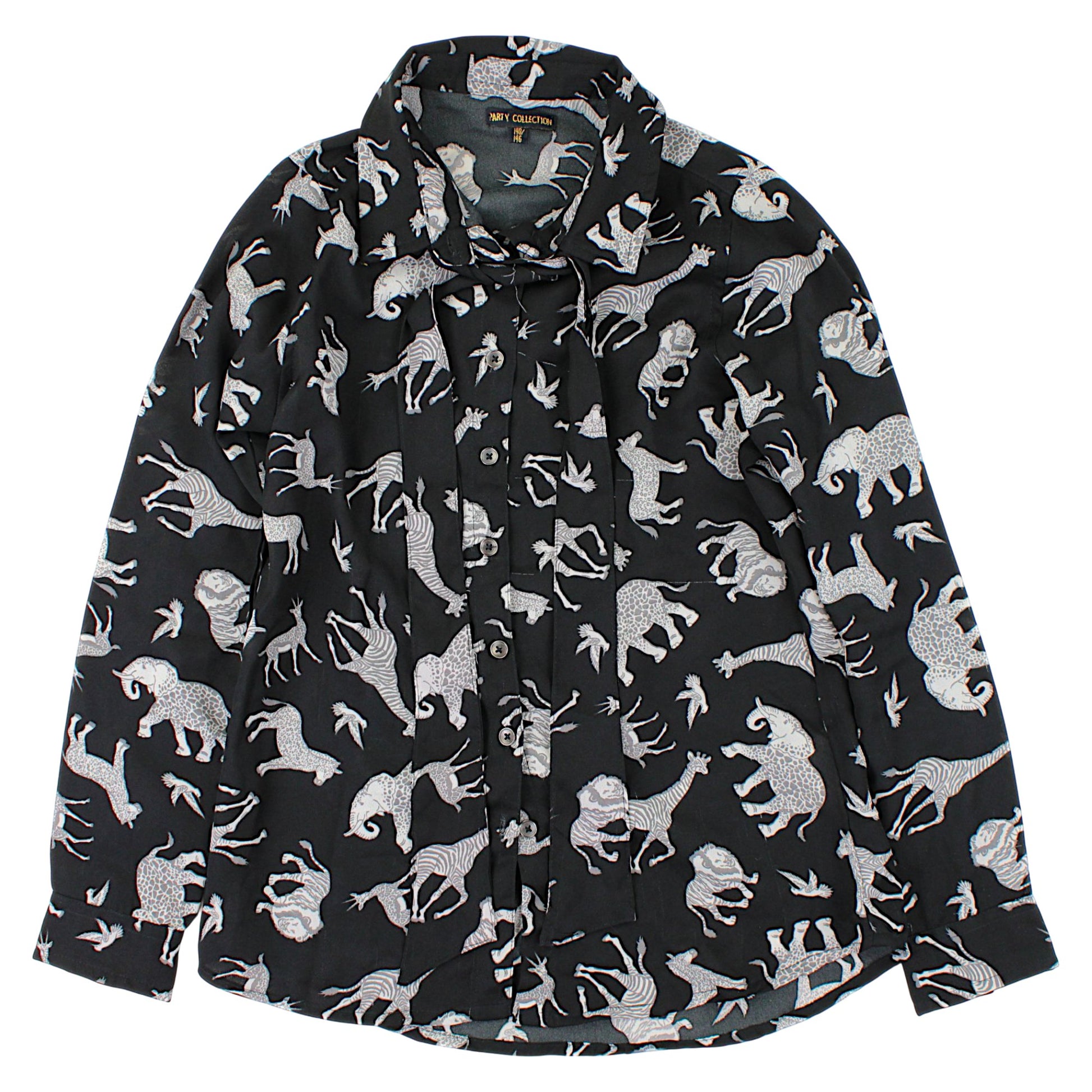 Black boy's shirt with an original animal pattern from Party Collection . Made of light material, perfect for spring and summer . Long sleeves with the possibility of rolling up and a button closure along the entire length. The stylish pattern with a wild animal motif adds originality and makes the shirt fit perfectly with various styles.