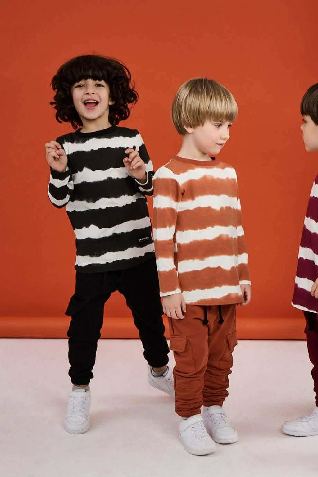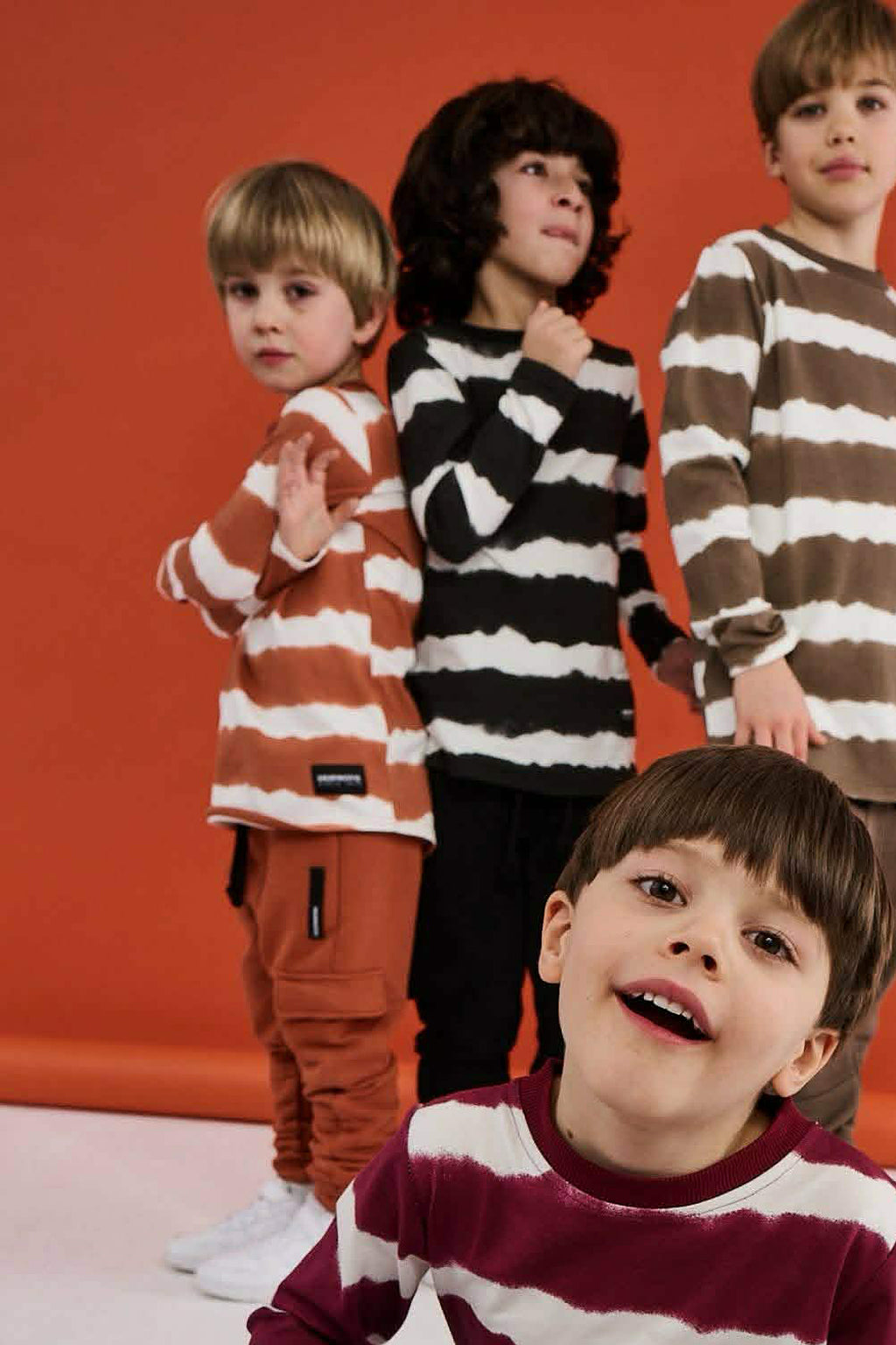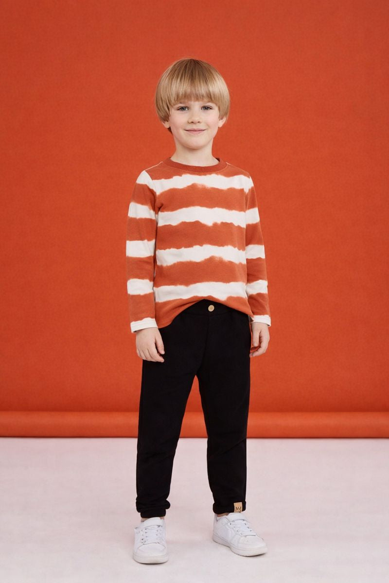 Chłopięca koszulka w stylowe pasy o kolorze cegła to idealny wybór na sezon jesień-zima. Wykonana z miękkiej i elastycznej tkaniny, zapewnia komfort noszenia. Koszulka posiada klasyczny krój z okrągłym dekoltem, co sprawia, że jest łatwa do zakładania i zdejmowania. Doskonała do codziennych stylizacji, pasuje zarówno do spodni, jak i szortów. Produkt jest przeznaczony dla chłopców, co czyni go idealnym dodatkiem do dziecięcej garderoby.