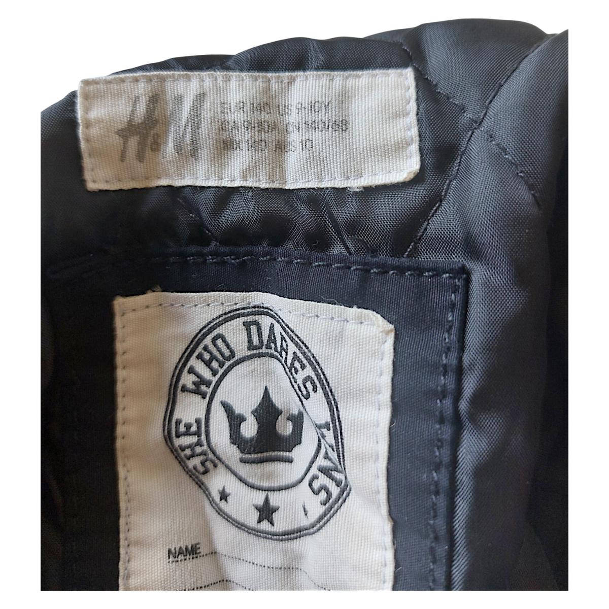 This black jacket for boys is designed with comfort and functionality in mind. A zipper at the front makes it easy to put on and take off. The jacket has long sleeves for added protection against the cold. Two chest pockets are perfect for storing toys or small accessories. The back of the jacket is slightly longer for added comfort. Elastic drawstrings at the waist allow for a better fit, ensuring a comfortable fit. This jacket is perfect for cold days, providing warmth and comfort. Please note that this is a used item, which means it may show minor signs of wear but still retains its basic functionality.