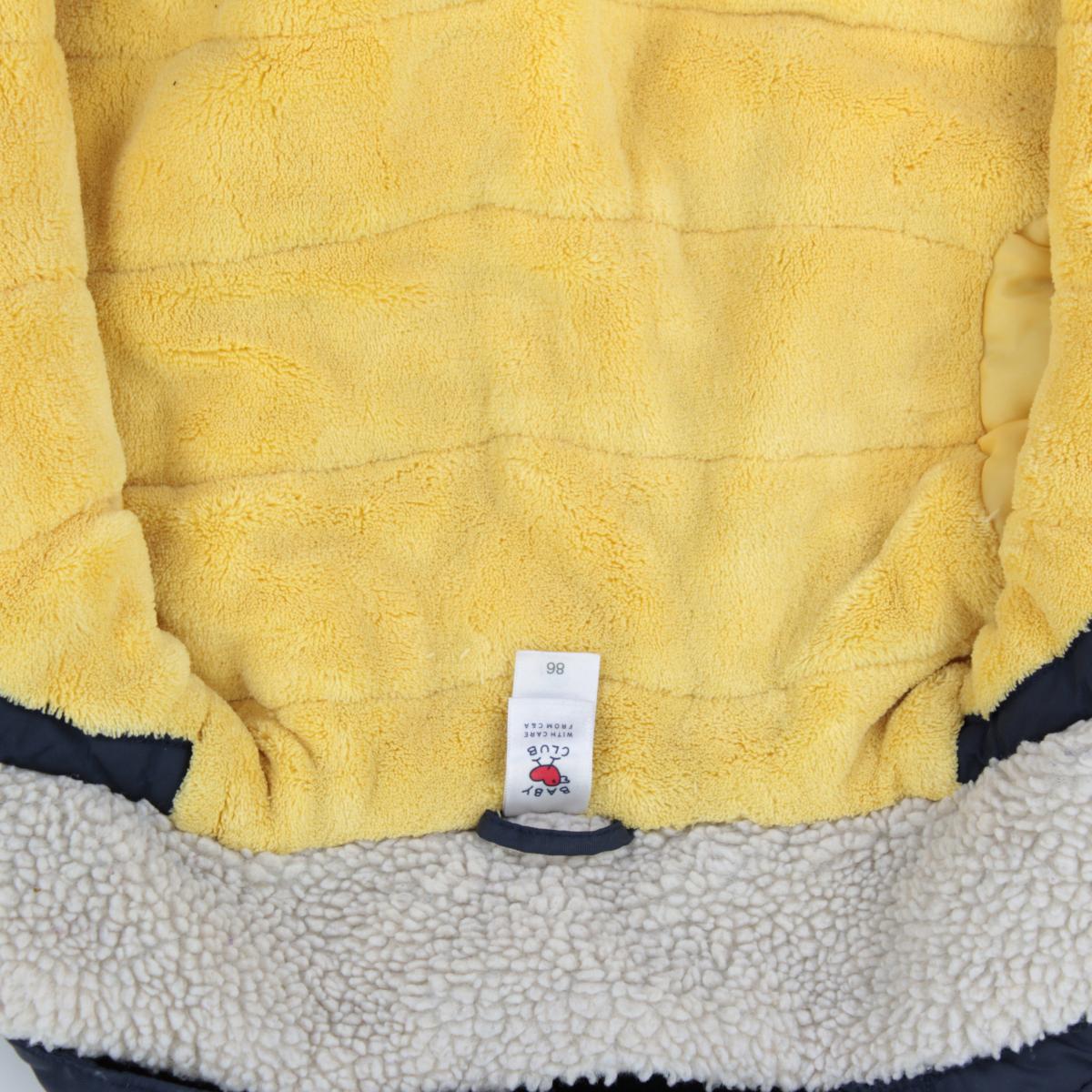 This navy blue jacket for boys is the perfect choice for cold days. Made of high-quality materials, the jacket is comfortable and warm. Equipped with a practical hood, it provides additional protection from the wind. Front pockets offer plenty of storage space. Decorated with a contrasting lining, the jacket also features a zipper and button closure for easy dressing. This item is used but in very good condition with no visible damage.
