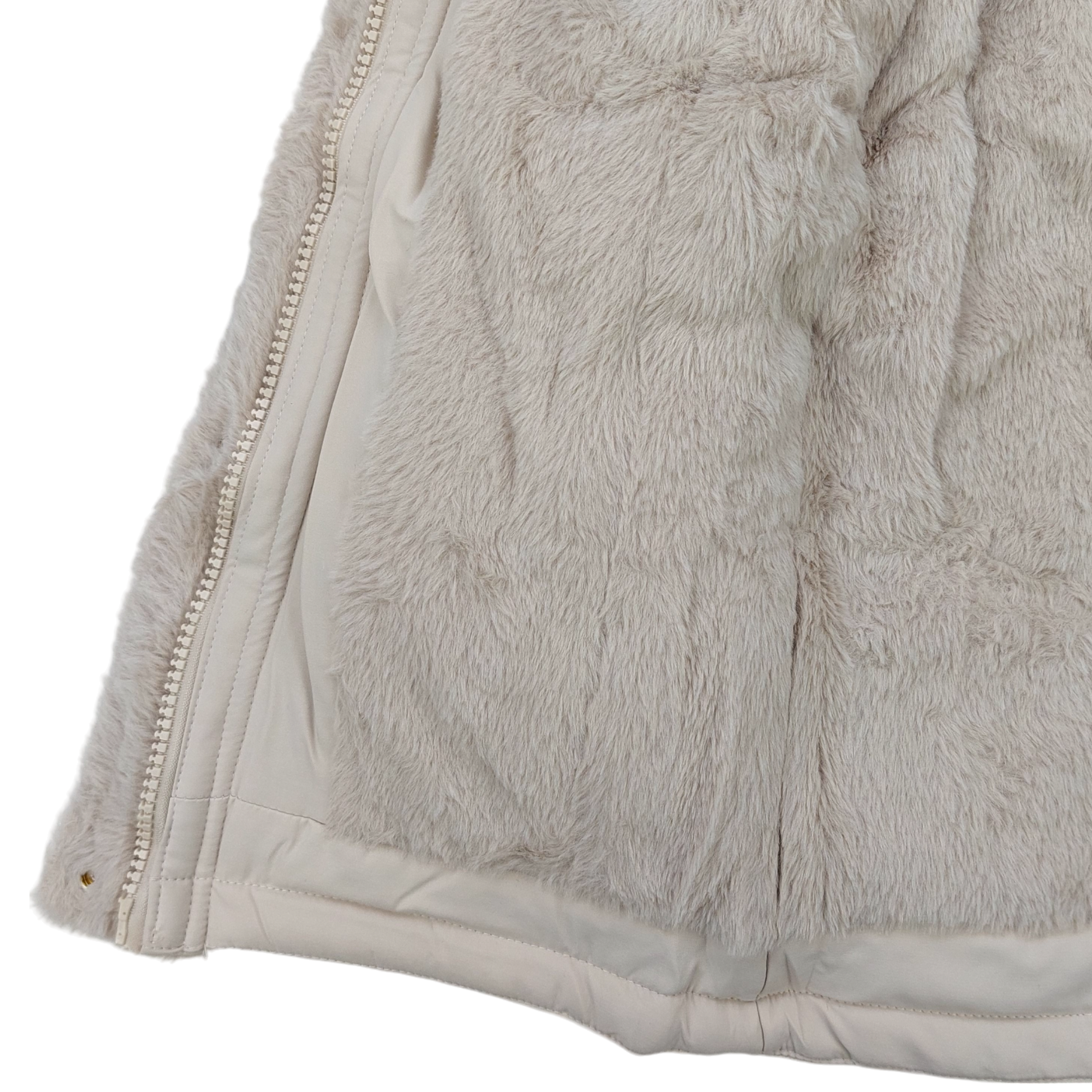 Girls' winter parka jacket Happy House KK-2245-211024 in an elegant beige color, it is a perfect choice for winter days. Made of high quality polyester , guarantees full protection against cold and moisture. Inside lined with soft teddy bear , provides warmth and comfort when worn. Detachable hood Finished with beautiful faux fur, it adds elegance, and the ability to detach it makes the jacket universal and suitable for various occasions.