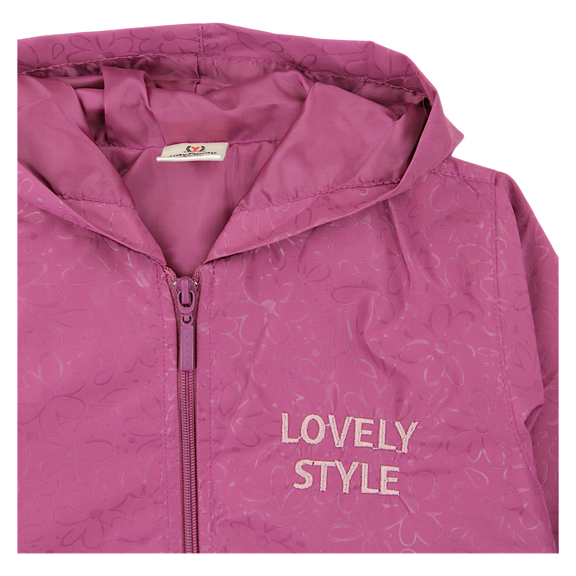 Stylish girl's set consisting of a light, spring jacket with a hood and a two-piece tracksuit . The long-sleeved sweatshirt has elastic cuffs at the sleeves and bottom , and the trousers with an elastic waistband ensure comfort. The zipper in the jacket makes it easy to put on, and the pockets allow you to hide small items. Delicate prints and fashionable inscriptions add a modern style to the set. The perfect choice for spring walks and everyday activities.