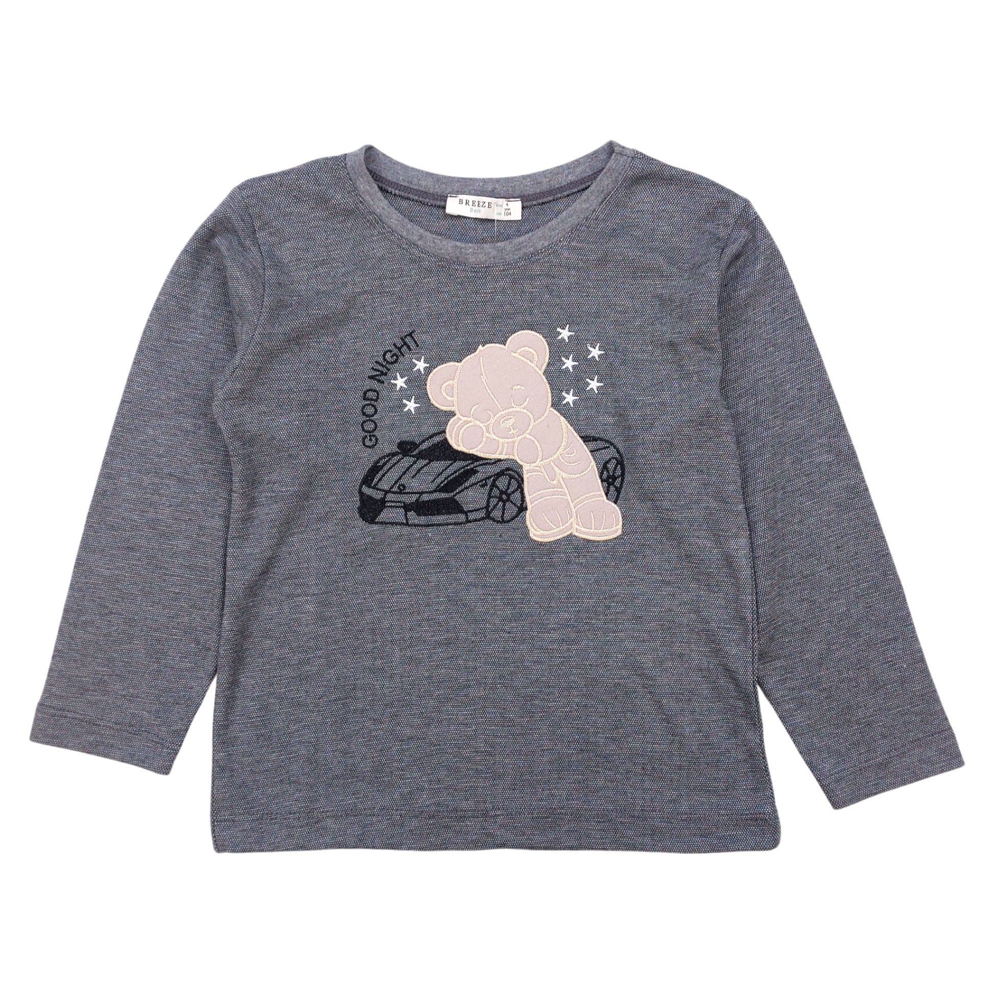 Boys' pajamas in ash color with a cute motif of a teddy bear sleeping next to a car and the inscription "Good Night". Made entirely of soft and skin-friendly cotton, it provides comfort and convenience during sleep. Top with long sleeves and pants with elastic band at the bottom, ideal for colder nights of autumn and winter.