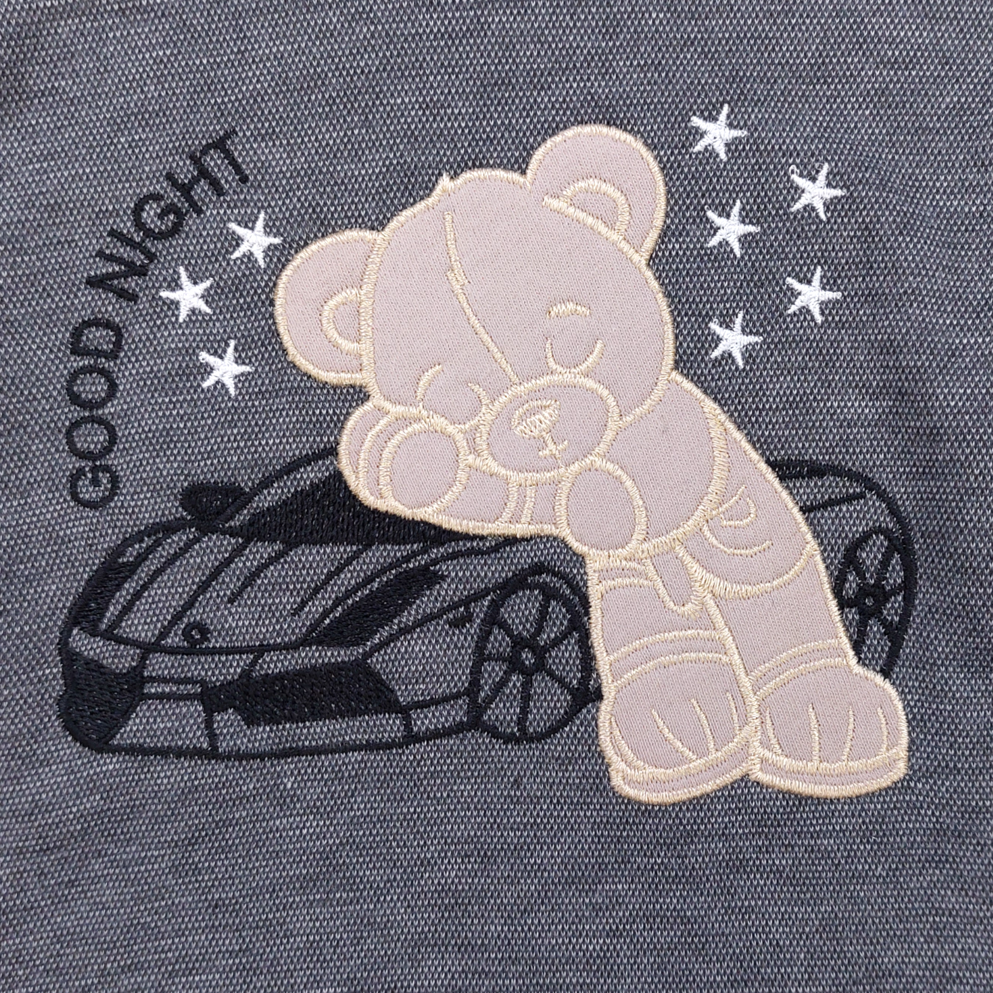 Boys pajamas by Breeze is a comfortable and stylish choice for every little car fan. Decorated in ash gray, children's pajamas is decorated with a cute print of a teddy bear falling asleep by the car and the words "Good Night". This fun and friendly motif is sure to appeal to little boys, adding a bit of joy to their evening bedtime rituals.