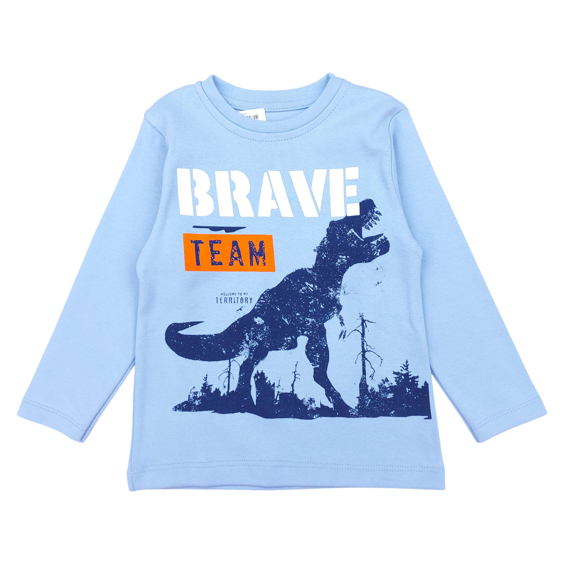Boys' dinosaur pajamas, made entirely of soft and pleasant to the touch cotton . The long-sleeved blouse has a print of the T-Rex silhouette and the inscriptions "Brave Team". The trousers at the waist on a comfortable elastic band are decorated with graphics with dinosaur motifs, which perfectly complement the whole set. The lack of pockets and fasteners ensures maximum comfort during sleep. Perfect for the autumn-winter season thanks to the long sleeves and legs.