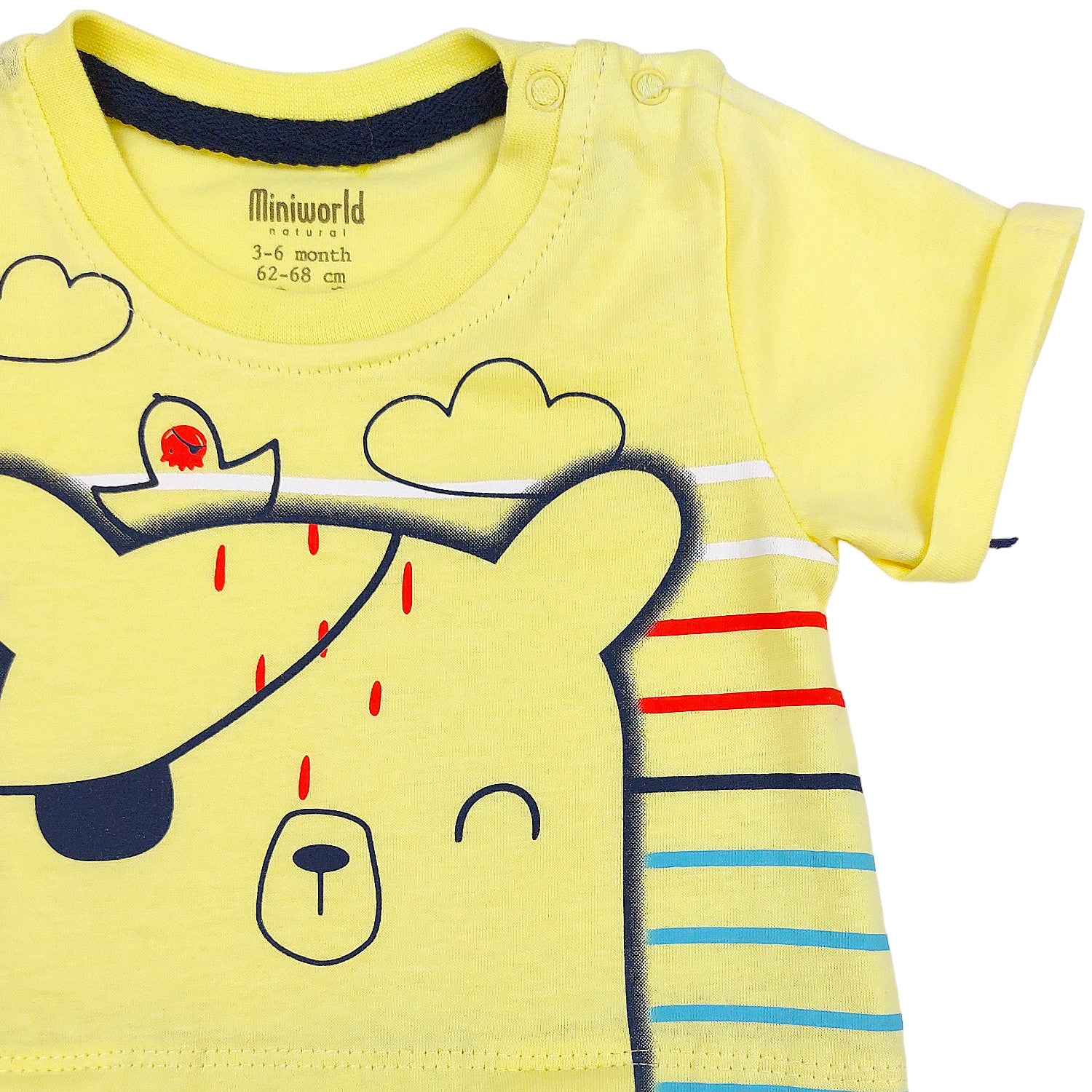 This romper model is decorated with a cheerful print of a charming pirate bear and colorful fish, which will give every toddler a pleasant, childlike style. Colors such as yellow and navy blue create a harmonious whole, ideal for little explorers. Such a motif stimulates the child's imagination and will certainly attract the attention of both parents and their children.