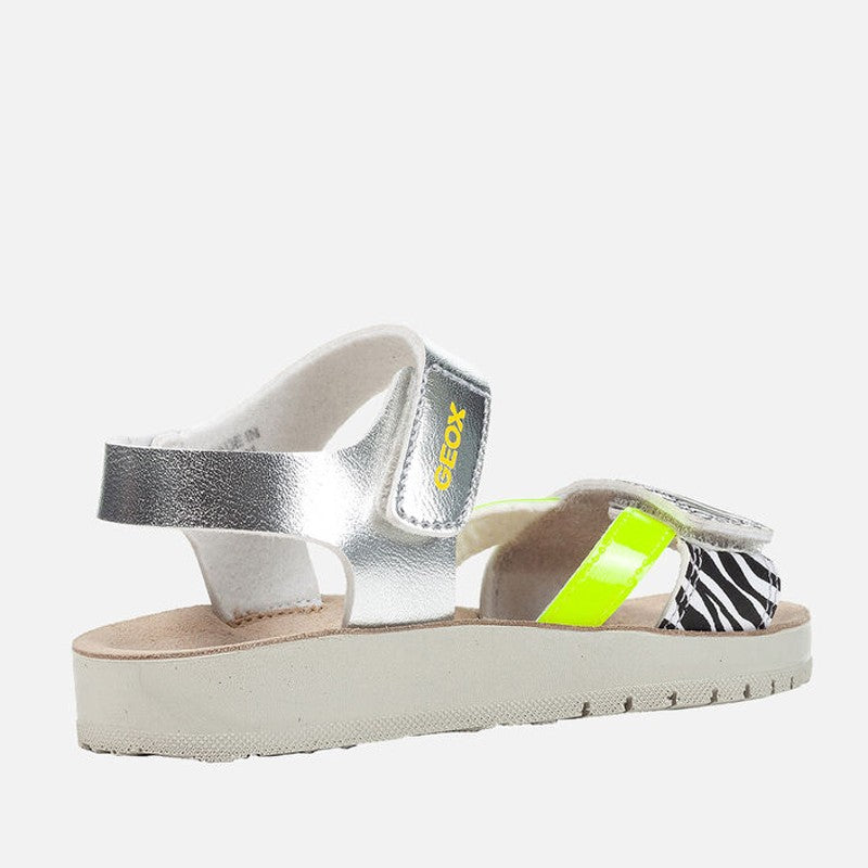Children's shoes sandals for girls Geox from the spring summer collection product code J15EAC-004BN-C0598 color silver/yellow fluo