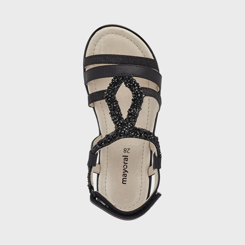 Sandals for children with stones fastened with velcro girl Mayoral from the Mini girl collection from the spring-summer season product code 43271 color 28 Black. Children's shoes.