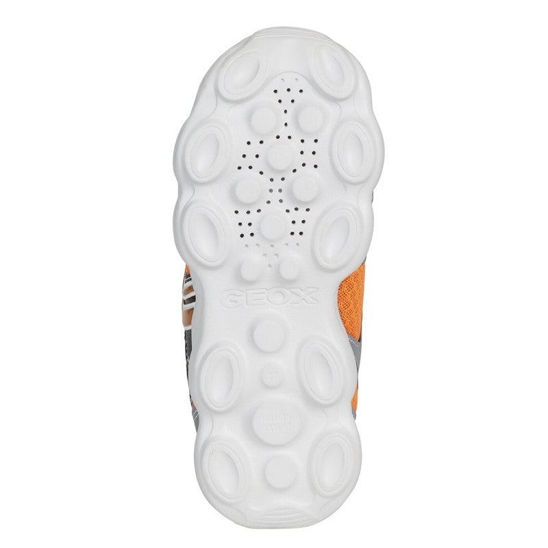 Geox J024BC-014BU-C0036 gray and orange children's sneakers are the perfect choice for any active boy on warmer days. The combination of modern design, lightweight construction and functionality makes these shoes an irreplaceable part of every young explorer's wardrobe.