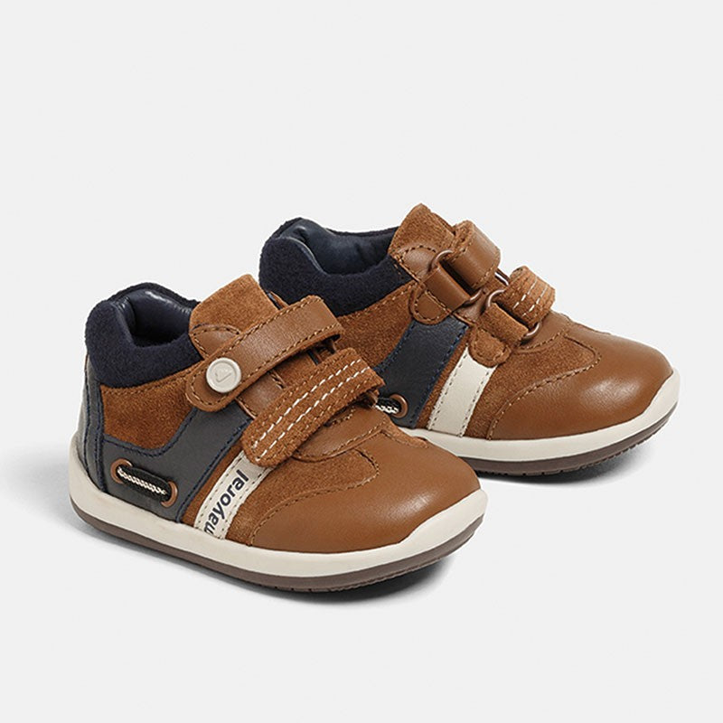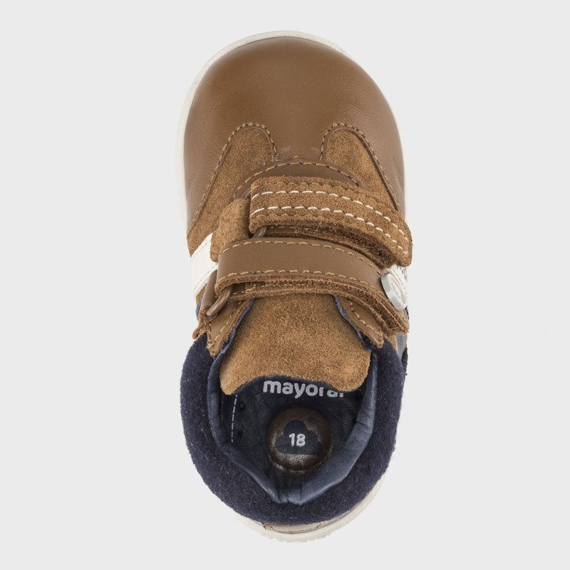 Children's leather sneakers with velcro fastening for boys Mayoral from the baby boy collection from the fall-winter season, product code 42156, color 11 Brown. Children's shoes.