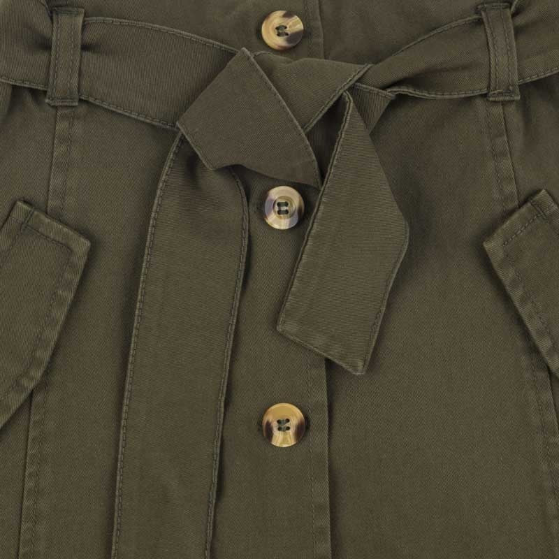 Skirt with buttons for children on an elastic band with a belt to tie and imitation pockets on the front for girls Mayoral from the junior girl collection from the spring summer season product code 6950 color 19 Green. Clothing for young children.