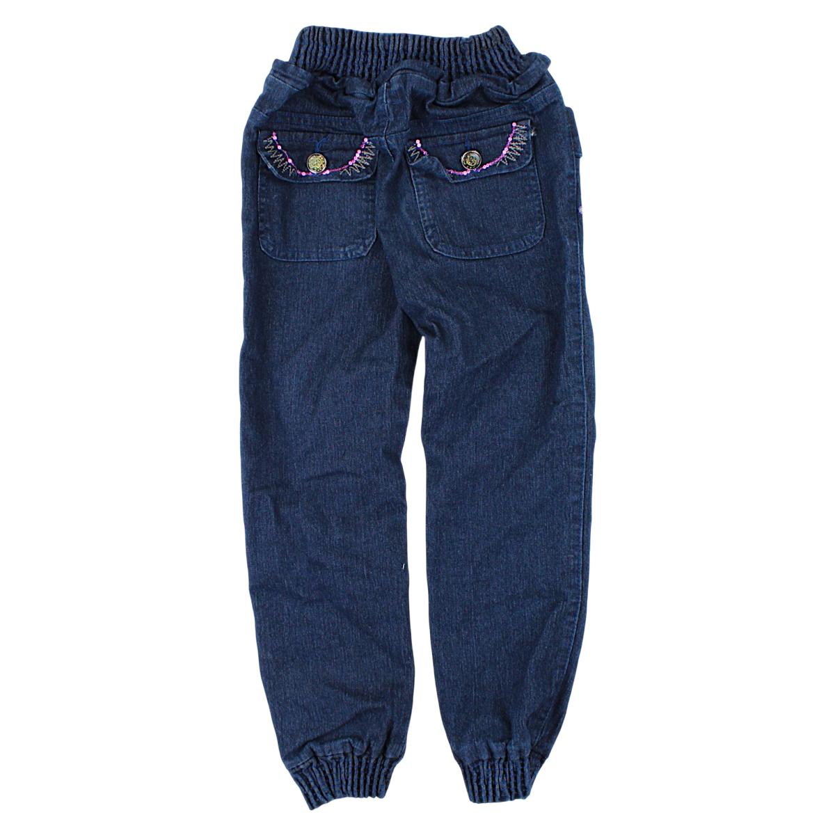 We offer navy blue trousers that are perfect for everyday wear. Made of high-quality materials, they provide comfort. The trousers feature an elastic waistband for added comfort and easy adjustment. Additionally, the trousers feature spacious pockets for storing essentials, and an interesting , ornate print gives them a unique character. A perfect choice for little fashionistas!