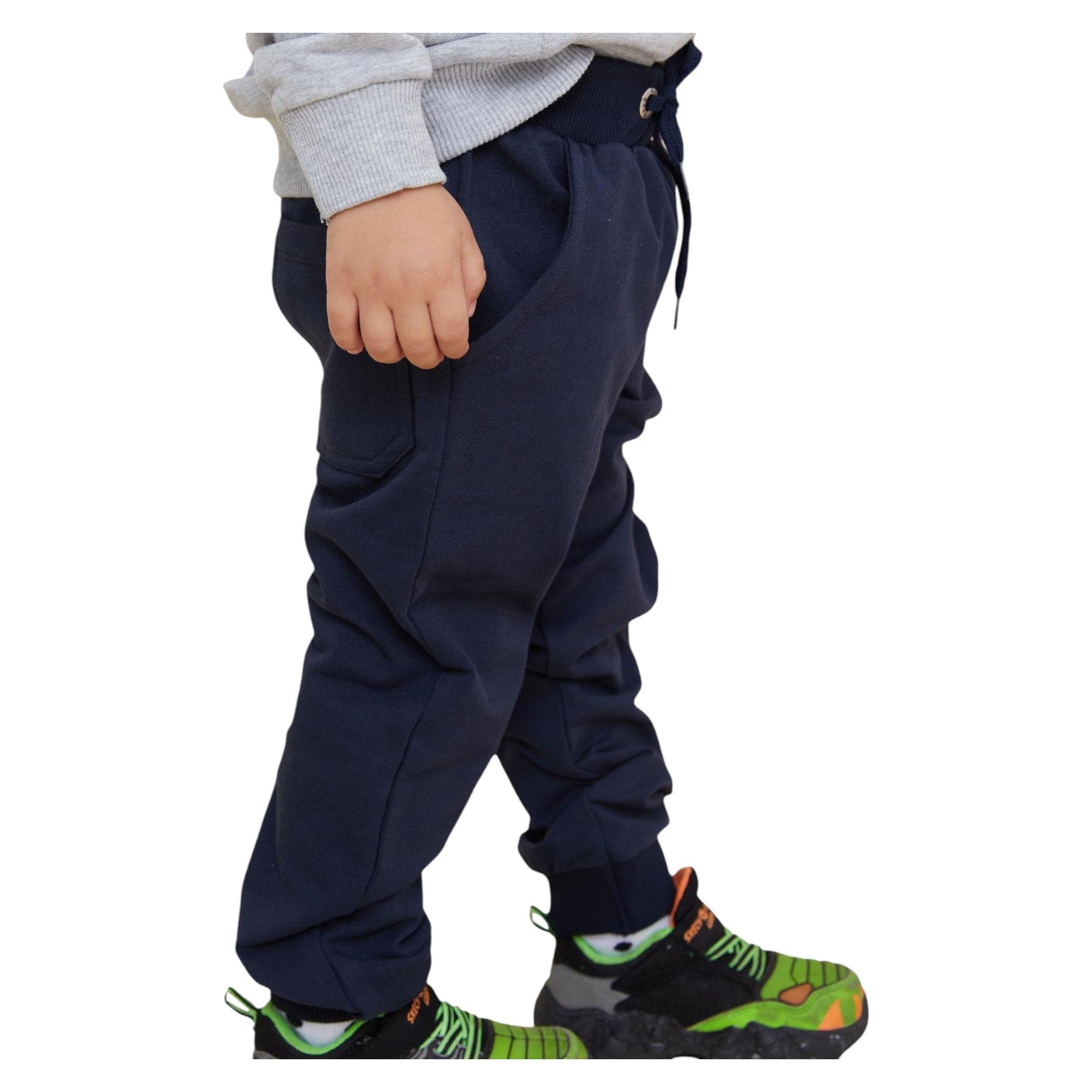 Breeze boys' sweatpants in navy blue are the perfect choice for the spring-summer season for every young explorer. Made of soft and pleasant to the touch fabric, ensuring comfort of wearing all day long. The front of the pants is decorated with two practical pockets that will hold all the little things you need during play. The waist has a string and elastic, which guarantees a perfect fit to the figure. There are two additional pockets on the back that add functionality. These pants are the perfect wardrobe element for boys who value comfort and style. Thanks to the universal navy blue color, they are easy to match with other items of clothing. The length of the legs provides freedom of movement, which makes the pants great for both physical activity and rest. The product is intended for children, which means that it meets all the requirements for quality and comfort.