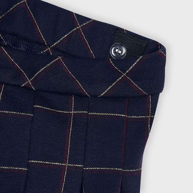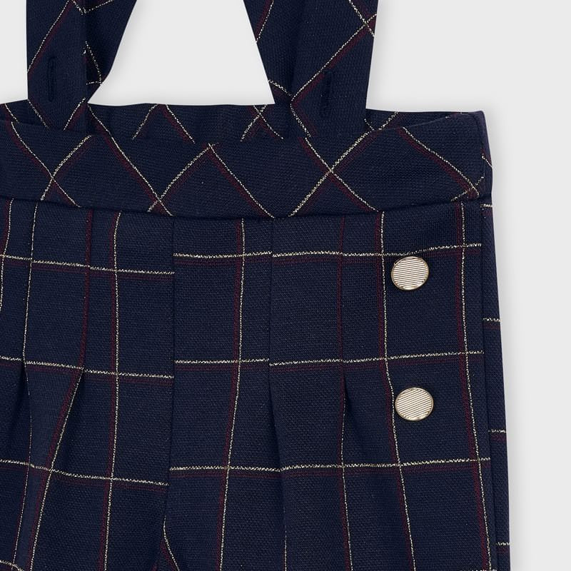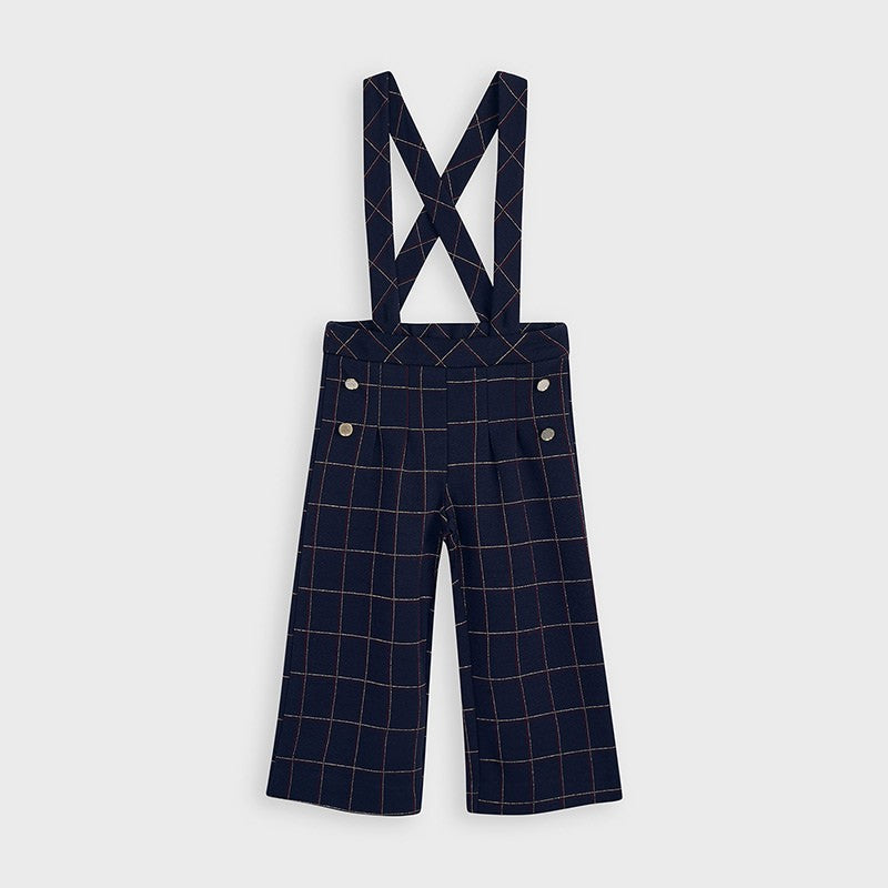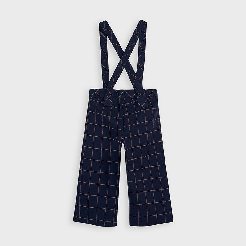 Children's trousers culottes with suspenders in a checkered pattern for girls Mayoral from the Mini girl collection from the fall-winter season, product code 4551, color 15 Navy. Children's clothing.