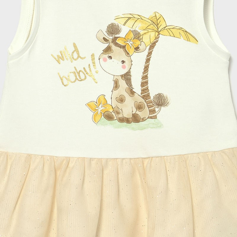 2-piece dress for children striped T-shirt with tie and strapless dress with print and tulle girl Mayoral from the baby girl collection from the spring-summer season product code 1976 color 59 Gold. Children's clothing.